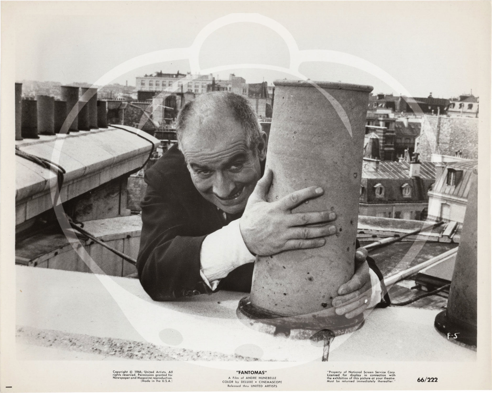 A 1960s update on the deathless French crime figure. Fantomas is an infamous criminal with uncanny impersonation skills. With the use of various masks and disguises, he assumes a plethora of identities in order to successfully carry out his crimes. Pictured in these photos is the hapless Inspector Juve (here played by Louis de Funes), for whom Fantomas is always just a few steps away but still out of reach.