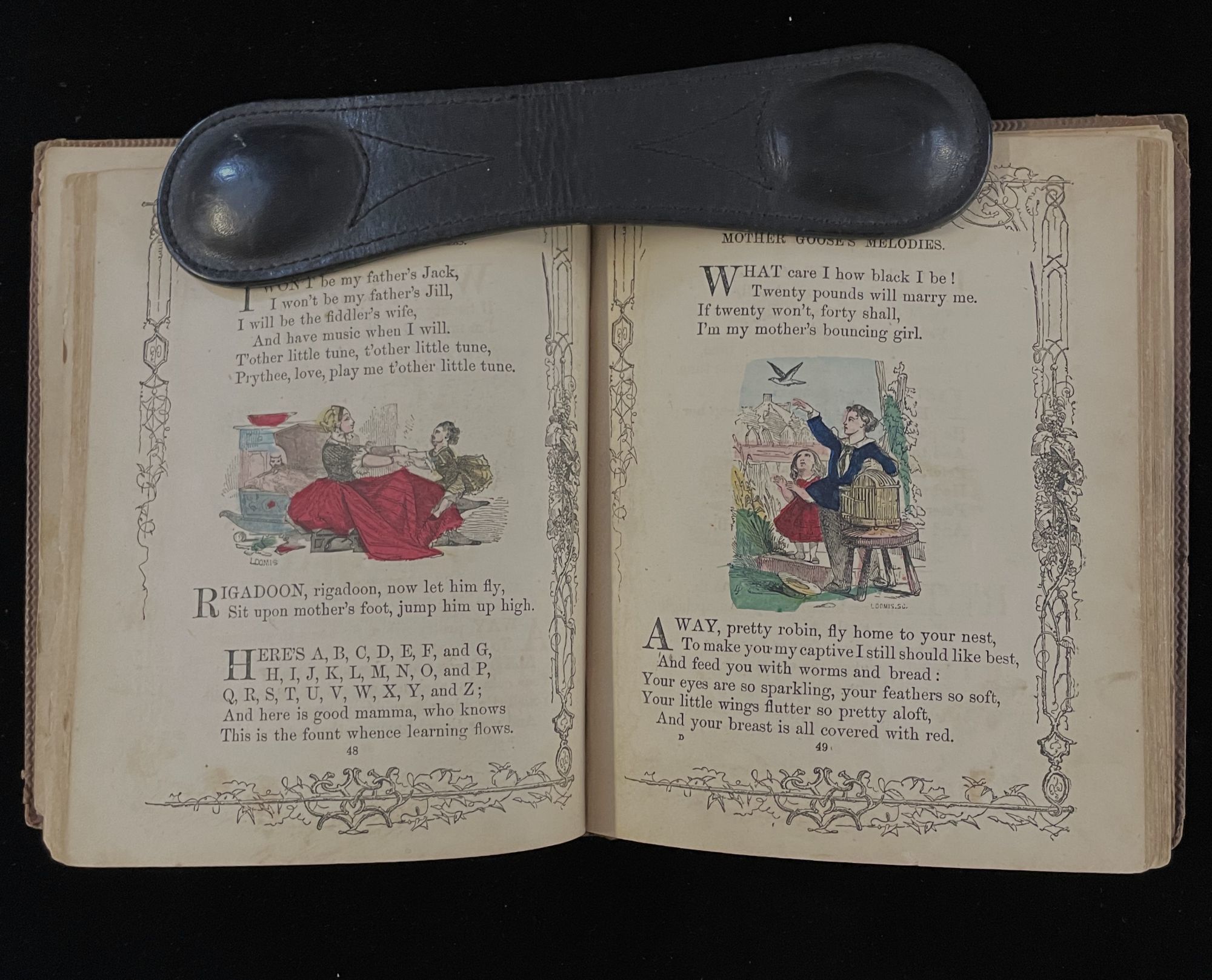 NY: James Miller, 1860. Hardcover. Very Good. With a Christmas gift inscription in old-fashioned handscript:"Merrie Christmas from Santa Claus. New York 1863." Original patterned brown cloth stamped in gilt on front and blind on rear, rebacked with brown cloth. Some spotting to front cover, corners worn. 96 pages of beloved rhymes, loads of engravings that are hand colored.
