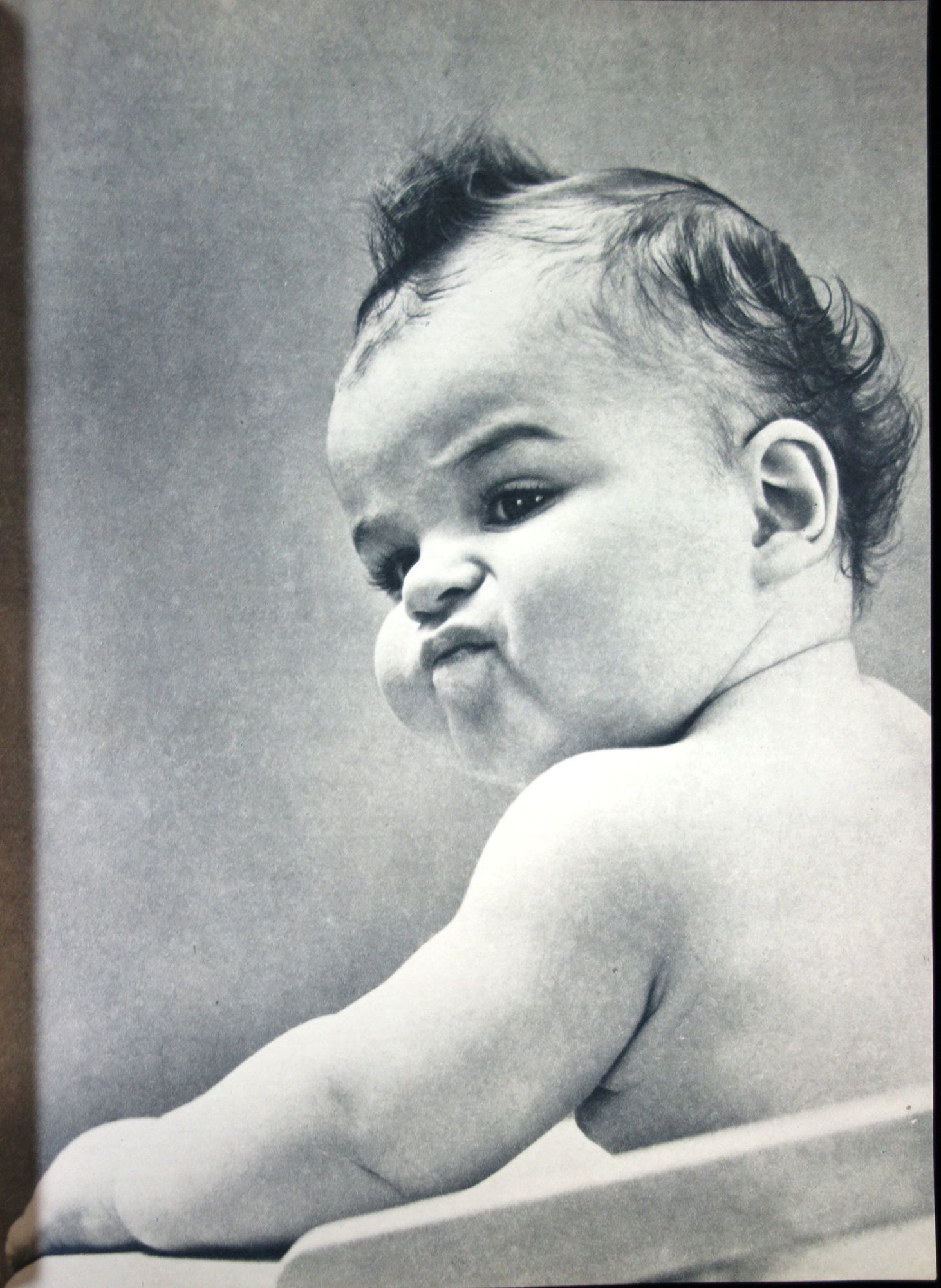 A collection of black and white humorous photographs of babies interspersed with question. A question is posed and the photograph to follow creates a funny depiction of what the baby may be thinking.