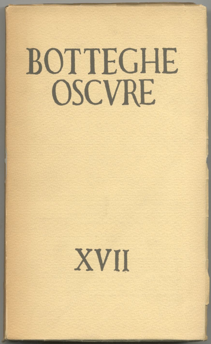Rome: Botteghe Oscure, 1956. Softcover. Near Fine. Printed wrappers as issued. Modest age-toning on the wrappers, toning at edges of the leaves, near fine. An important literary magazine with contributions by David Gascoyne, Jon Silkin, Carolyn Kizer, Richard F. Hugo, Stanley Moss, William Goyen, and many others.