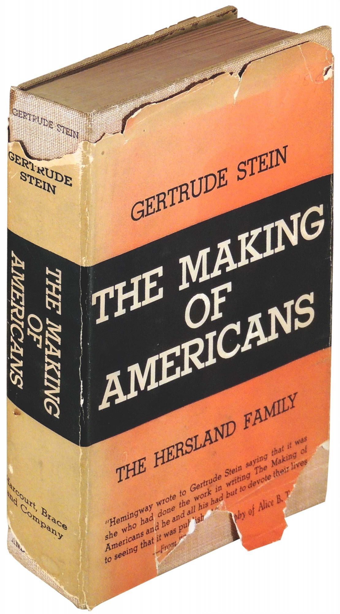 New York: Harcourt, Brace and Company, 1934. Hardcover. Very Good/Good. Hardcover. First abridged edition with "first edition" on the copyright page. One of Stein's 'hermetic' works: "The story of an American family, of their descendants and their friends" (jacket). American novelist, poet, art collector, and playwright Gertrude Stein (1874 - 1946) hosted the Paris salon, a meeting place for modernist artists and authors. She attended Johns Hopkins School of Medicine in 1897 at a time when men dominated the field. While at Hopkins, she had an 'erotic awakening' and became infatuated with political activist, Mary Bookstaver and her female lover. The failed love triangle led to Stein and her brother moving to Paris, beginning an incredible modern art collection, publishing novels, and cultivating the Paris salon.