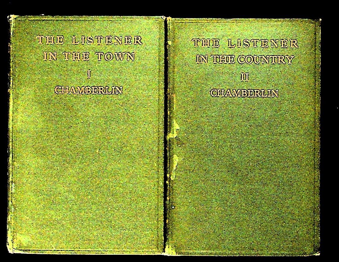 Boston: Copeland and Day, 1896. Hardcover. Very Good. Hardcover. First edition. 2 volumes. Joseph Edgar Chamberlin (1851-1935) was an American journalist and writer for newspapers in Chicago, Boston, and New York, plus for national magazines and journals. His writing career began in 1871 and continued until his death in 1935. He is most well-known for writing a daily column, The Listener, for the Boston Evening Transcript beginning in 1887. Through this column he became known as "The Listener of the Transcript." He was a friend and mentor to many aspiring writers, and he also had a close friendship with Helen Keller and Anne Sullivan for over 40 years. They frequented Chamberlin's home, Red Farm, and Keller lived with the family in 1896-97. According to an article on the American Foundation for the Blind website, written by Chamberlin's grandson, "Keller wrote that her Uncle Ed— whom she met when she was just eight years old, 'most enabled and sweetened my life.' She found him to be a tender and poetic man; a man who lived 'in the service of words,' cared deeply about social issues and the natural world, and was a sympathetic and understanding friend and mentor." This two-volume set is a collection of essays from The LIstener on observations made in the city and country. Essays and fragments are reprinted, with modifications, from the Boston "Transcript". Bound in the original green cloth boards lettered in gold on the spines and front covers. Minor wear to the extremities and offsetting to endpapers. Minor offsetting to endpapers, else clean interiors. 142 pages in volume one; 126 pages in volume two. This set may require an extra shipping fee. LIT/102616.