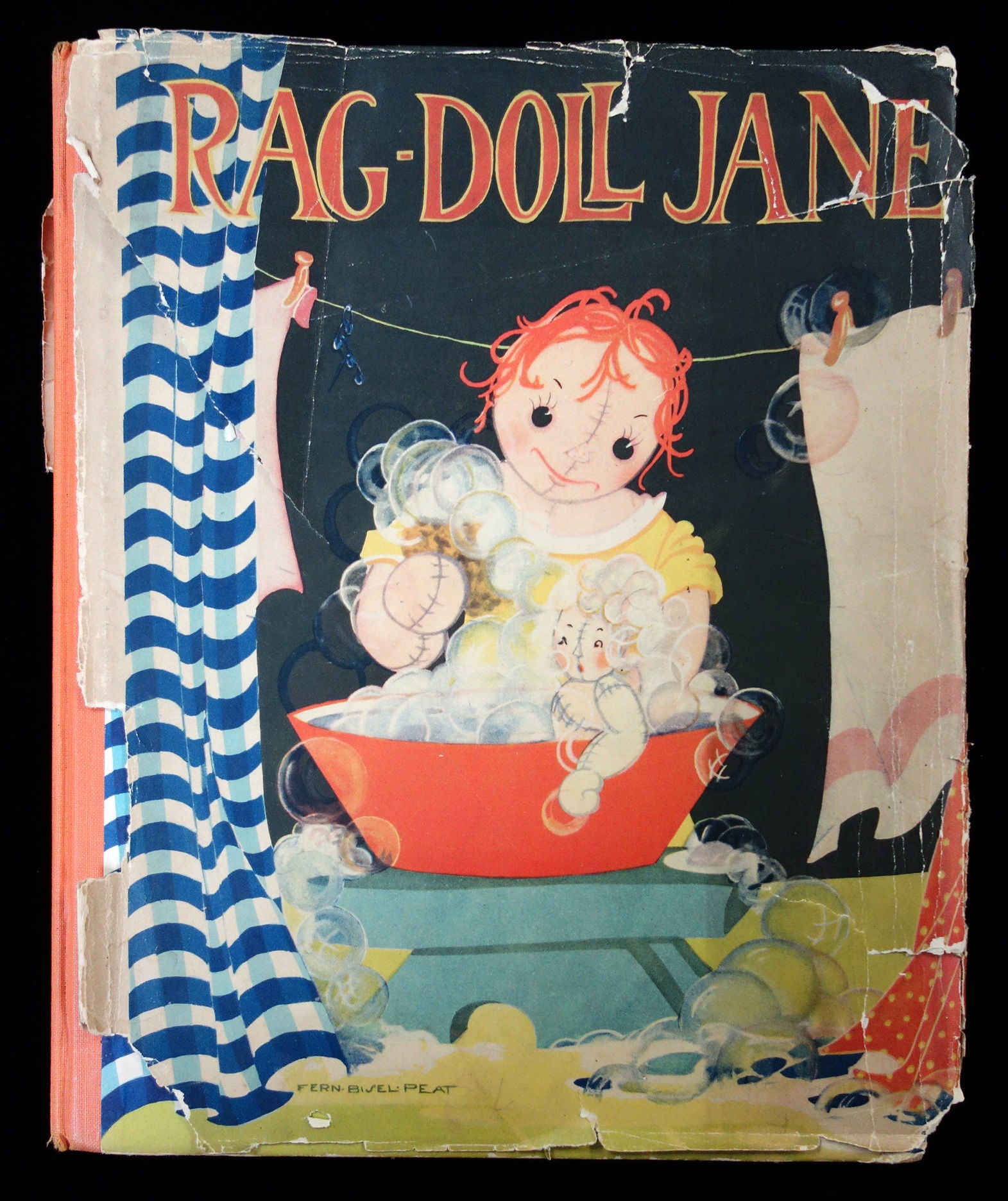 Akron, Ohio: The Saalfield Publishing Company, 1935. unpaginated. Applied color printed cover over cloth spine, matching dust jacket, story is interspersed by full page color illustrations by Fern Bisel Peat.