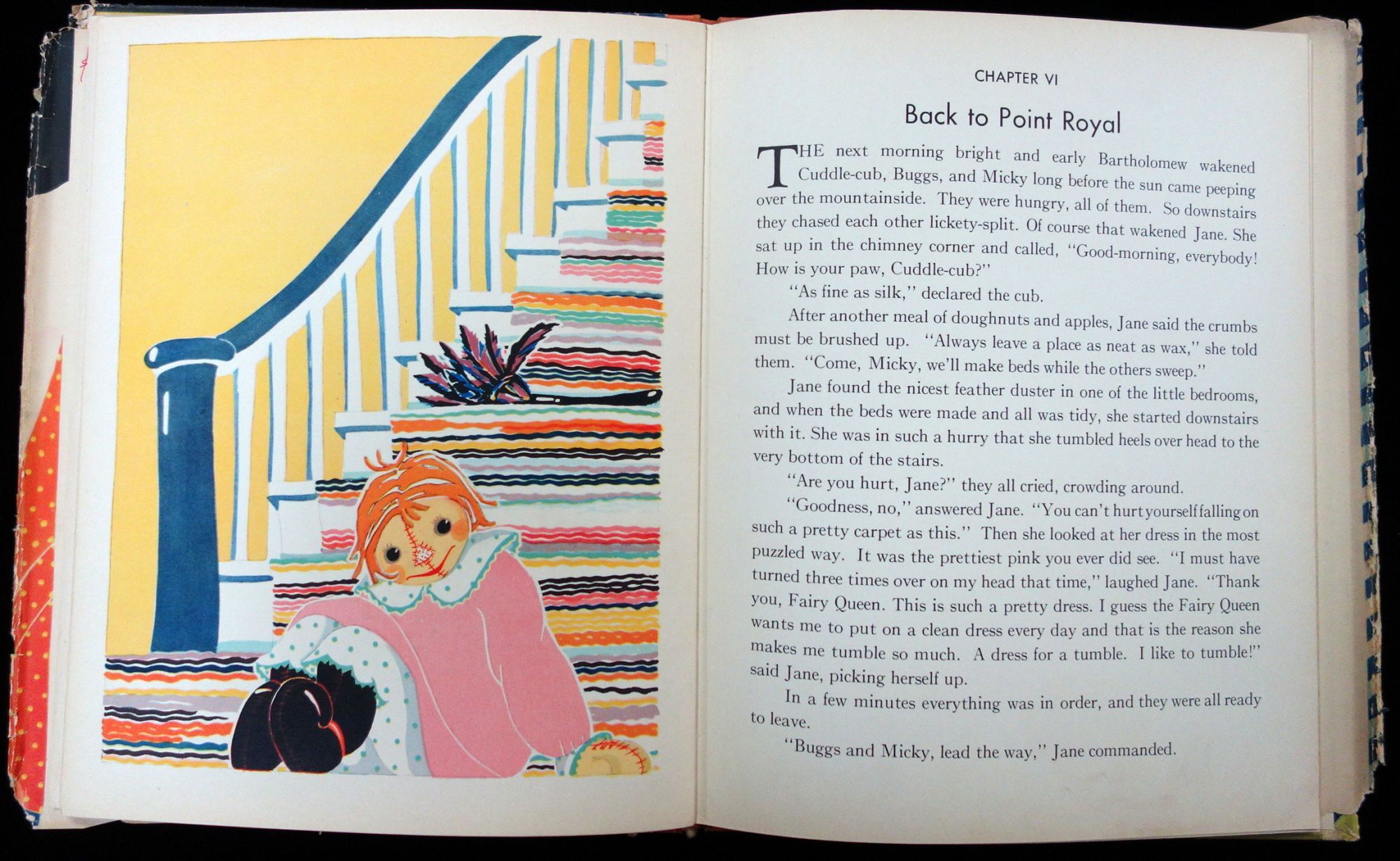 Rag doll Jane meets many interesting characters, squirrels , cubs, soldiers, sailors, and clowns.
