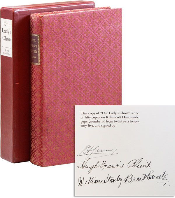 Boston: Bruce Humphries, 1931. First Edition. Limited to 50 copies on Kelmscott Handmade paper of which this no. 72. Octavo (22cm.); full crimson brocade-like cloth, brown gilt spine label, top edge gilt, red cloth slipcase, printed paper label to slipcase spine; [2],xxx,213pp. Just a hint of spotting and wear to slipcase, else Fine. Signed by Braithwaite, Blunt, and Cram on first colophon page. Quite an attractive production, printed by Fred Anthoensen at the Southworth Press in Portland, Maine.