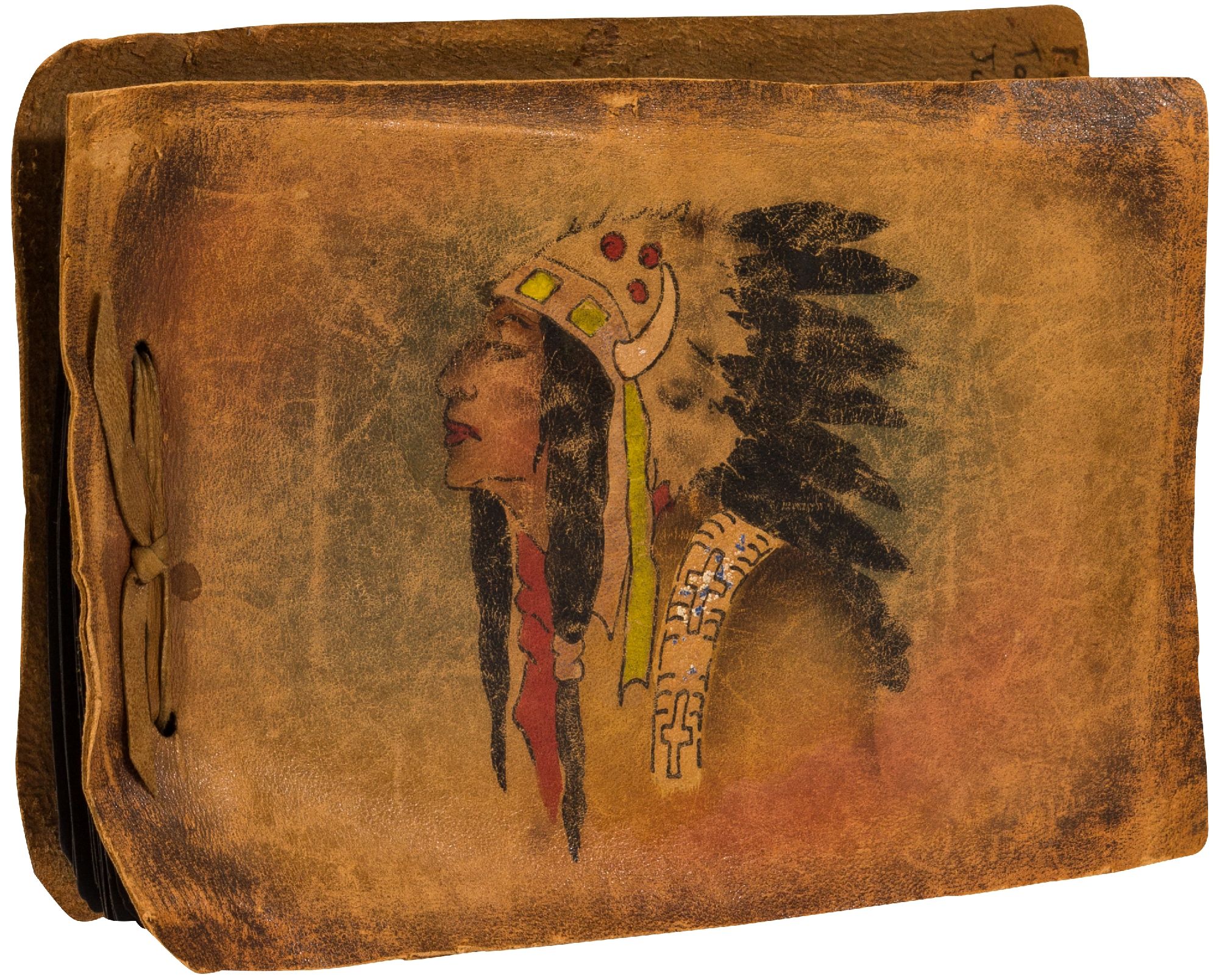 Allentown, Pennsylvania, 1922. Softcover. Near Fine. Oblong small octavo. Measuring 7.5" x 5.5". String-tied flexible leather album with Native American illustration on the front cover. Contains 113 black and white or sepia-toned gelatin silver photographs measuring between ½" x ½" and 3½" x 5½", some with captions. Very good album with some loose pages, small chips, and rubbing with near fine photographs.