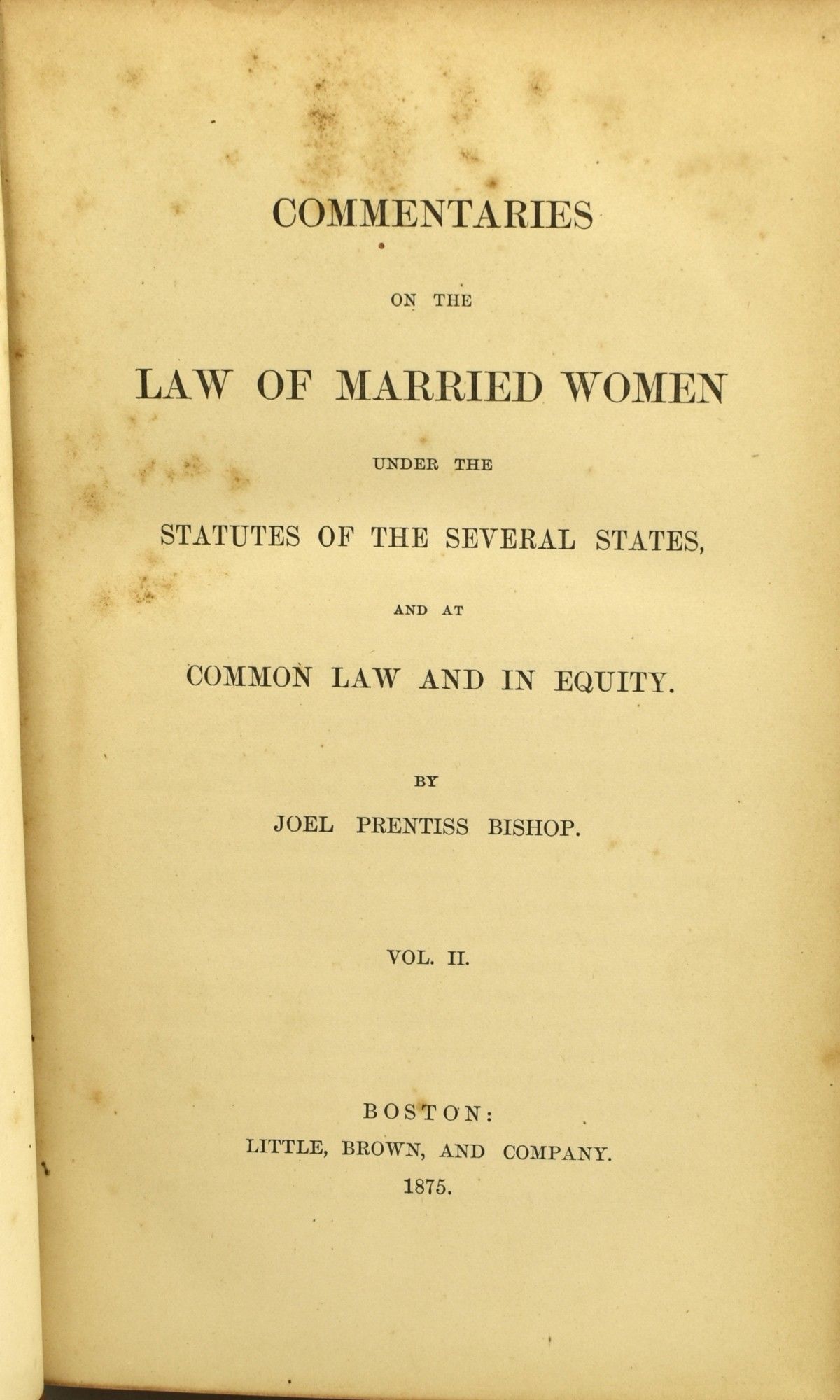 COMMENTARIES ON THE LAW OF MARRIED WOMEN UNDER THE STATUTES OF THE SEVERAL STATES, AND AT COMMON LAW AND IN EQUITY (Volume II Only)