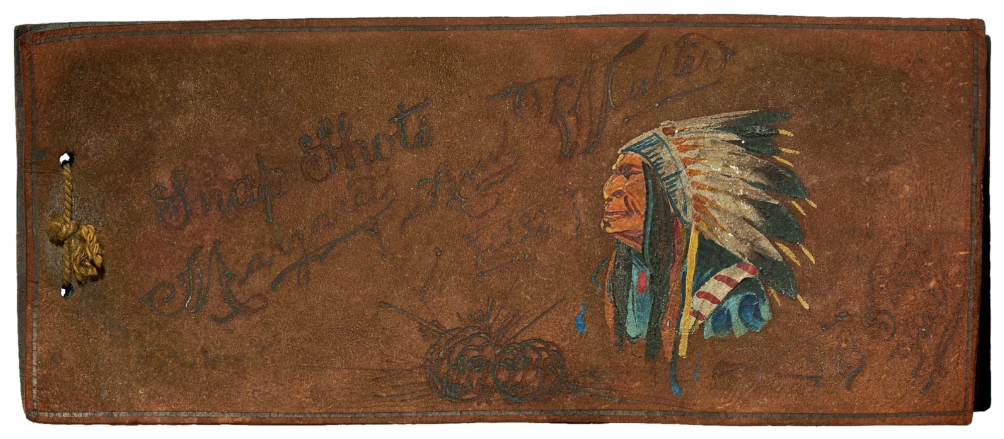Kentucky, 1932. Softcover. Good. Oblong octavo measuring 10.5" x 4.5". String-tied flexible suede boards with a Native American illustration on the front board. Contains 75 sepia-toned or black and white gelatin silver measuring between 1.5" x 2" and 4" x 6" without captions. Good only album with rubbing, rips, and tears with very good photographs with chips and tears.