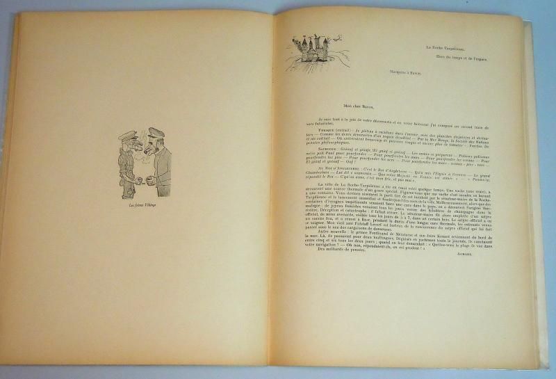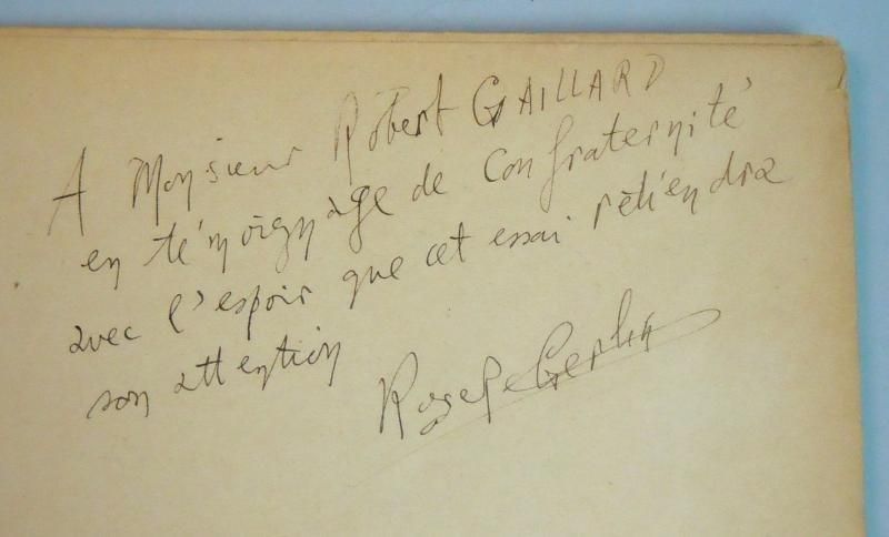 Paris: Rene Debresse, 1939. 76 pp., Uncut. Heavy Stock Wraps. Small black and white illustrations each page. Thirty six single page satirical writings. Each page captioned with hors du temps et de l'espace.(beyond time and space). Free end paper inscribed and autographed by the author. OCLC 2. Measures 9 3/4" x 12 3/4