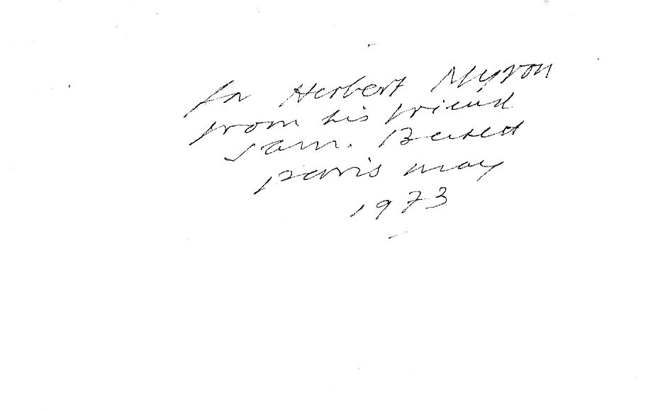 Herbert Myron, a professor of French at Boston University, was a friend who had a lengthy correspondence with Beckett. Myron introduced Beckett to Lawrence Harvey who wrote SAMUEL BECKETT: POET AND CRITIC, focusing on Beckett's least known writings.