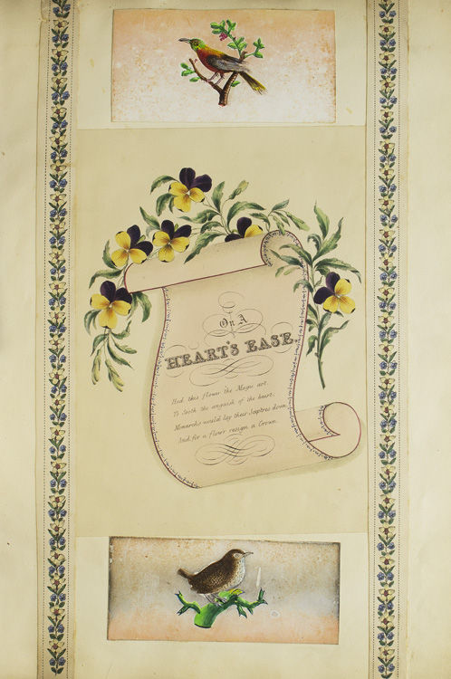 Many floral watercolors designs of baskets and urns of flowers, some (5) signed J. Leigh, one of Peacock. The Dumb Alphabet Plate The Second. London , Knight, 1834 by Nicholas.