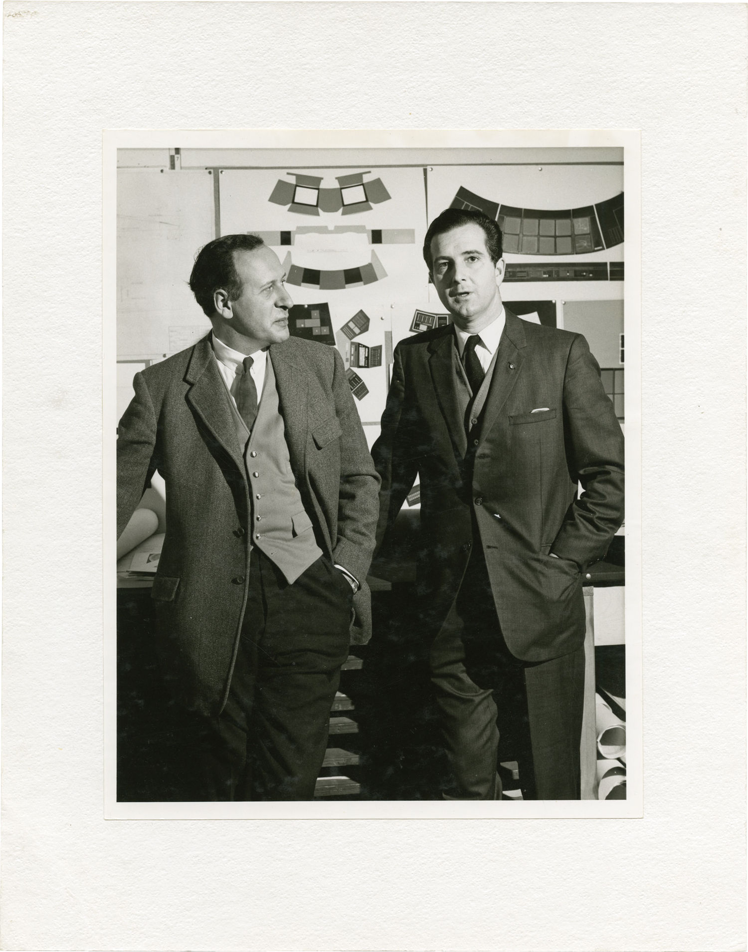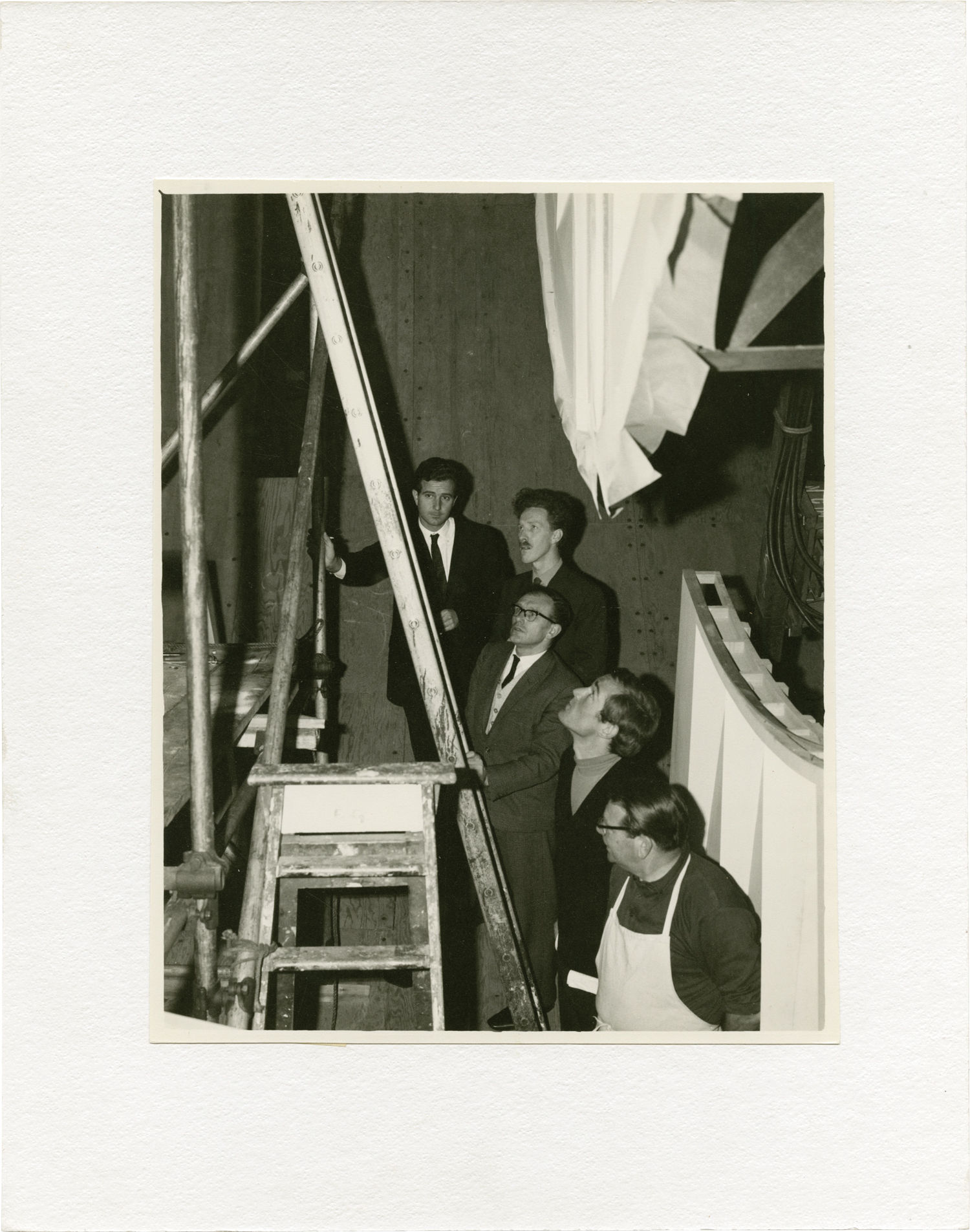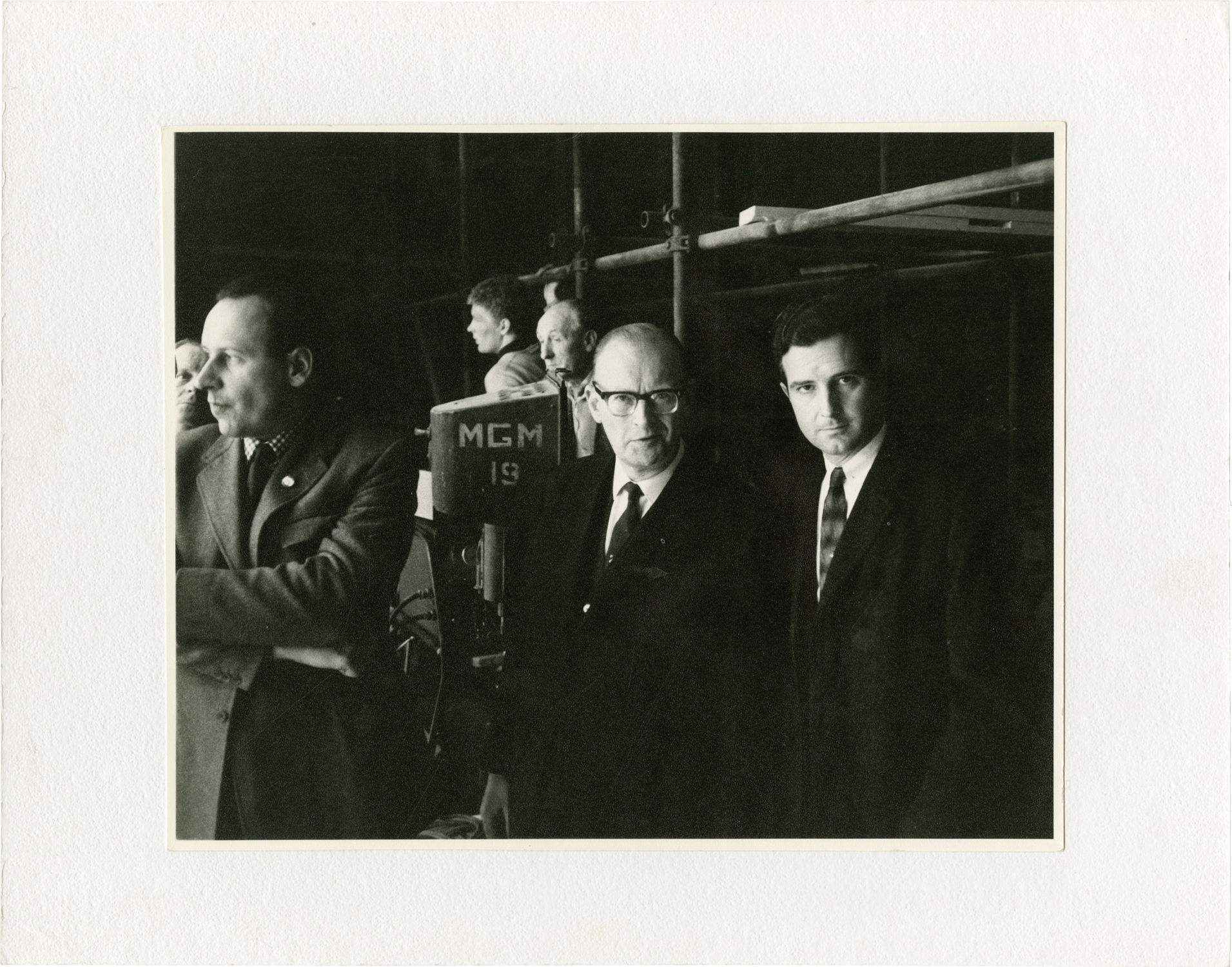 Beverly Hills, CA: Metro-Goldwyn-Mayer [MGM], 1968. Archive including 20 vintage linen-backed production photographs, a trade advertisement, a film program, and a souvenir booklet from the 1968 film "2001: A Space Odyssey." From the collection of NASA scientific consultant Frederick I. Ordway III, with images prominently featuring Ordway, production designer Harry Lange, Arthur C. Clarke, Stanley Kubrick, and others. One photograph has Ordway's name written on the recto, in silver marker. All photographs mounted on matte board, as issued.