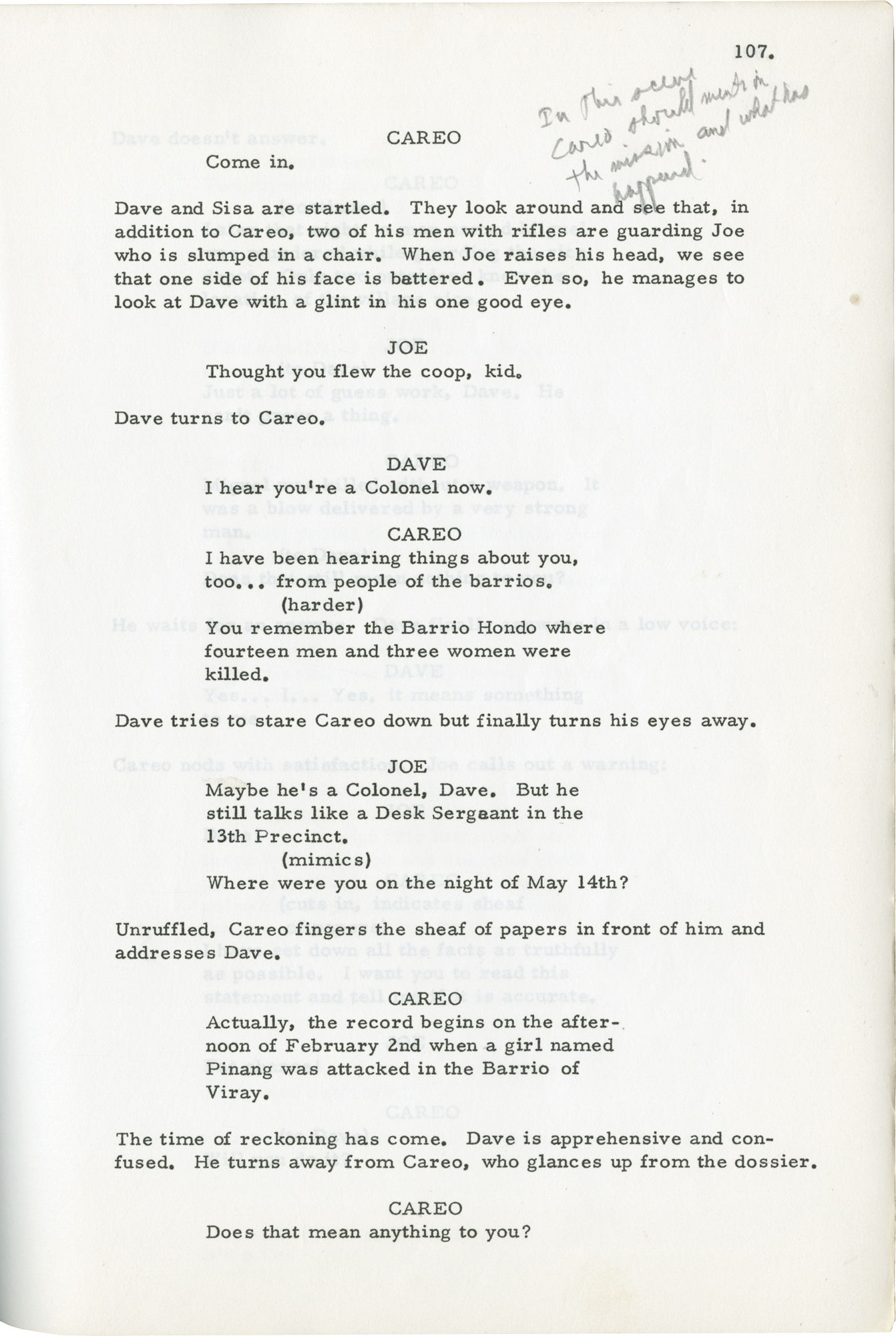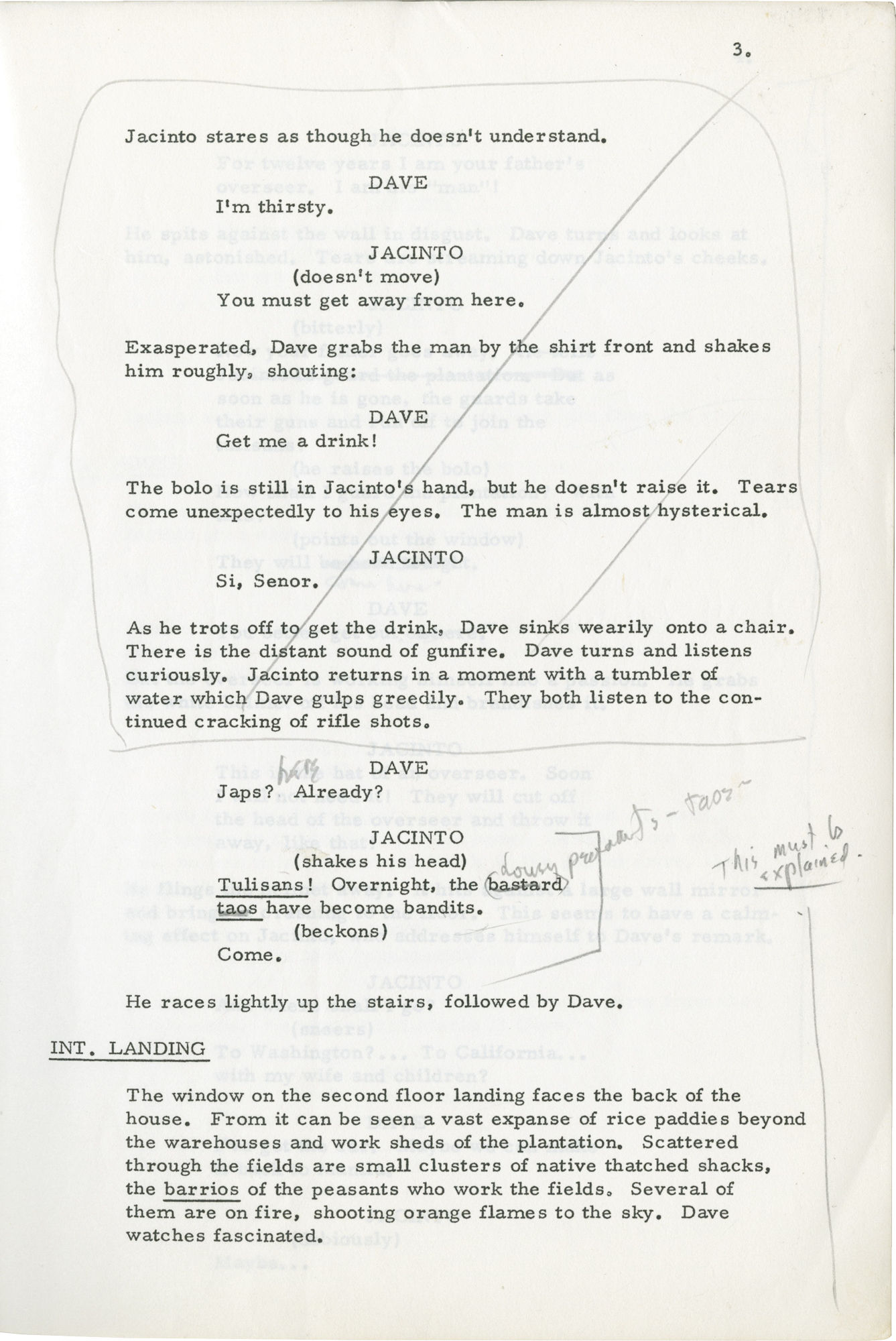 Hollywood: Petramonte Productions, 1963. Draft script for the 1963 film. Actor Van Heflin's copy, with his manuscript annotations throughout. Based on the 1951 novel "Fortress in the Rice" by Benjamin Appel. The only film ever released by Petramonte Productions (and eventually distributed by Allied Artists).