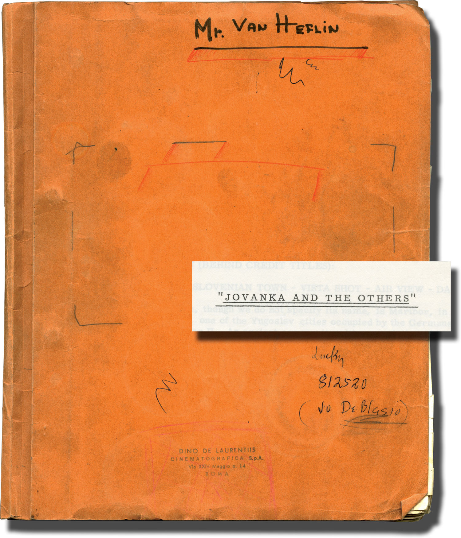 Hollywood: Paramount Pictures. Final Draft script for the 1955 film. Actor Van Heflin's copy, with his name on the front wrapper and his manuscript annotations throughout. Based on the novel "Jovanka e le altre" by Urgo Pirro.