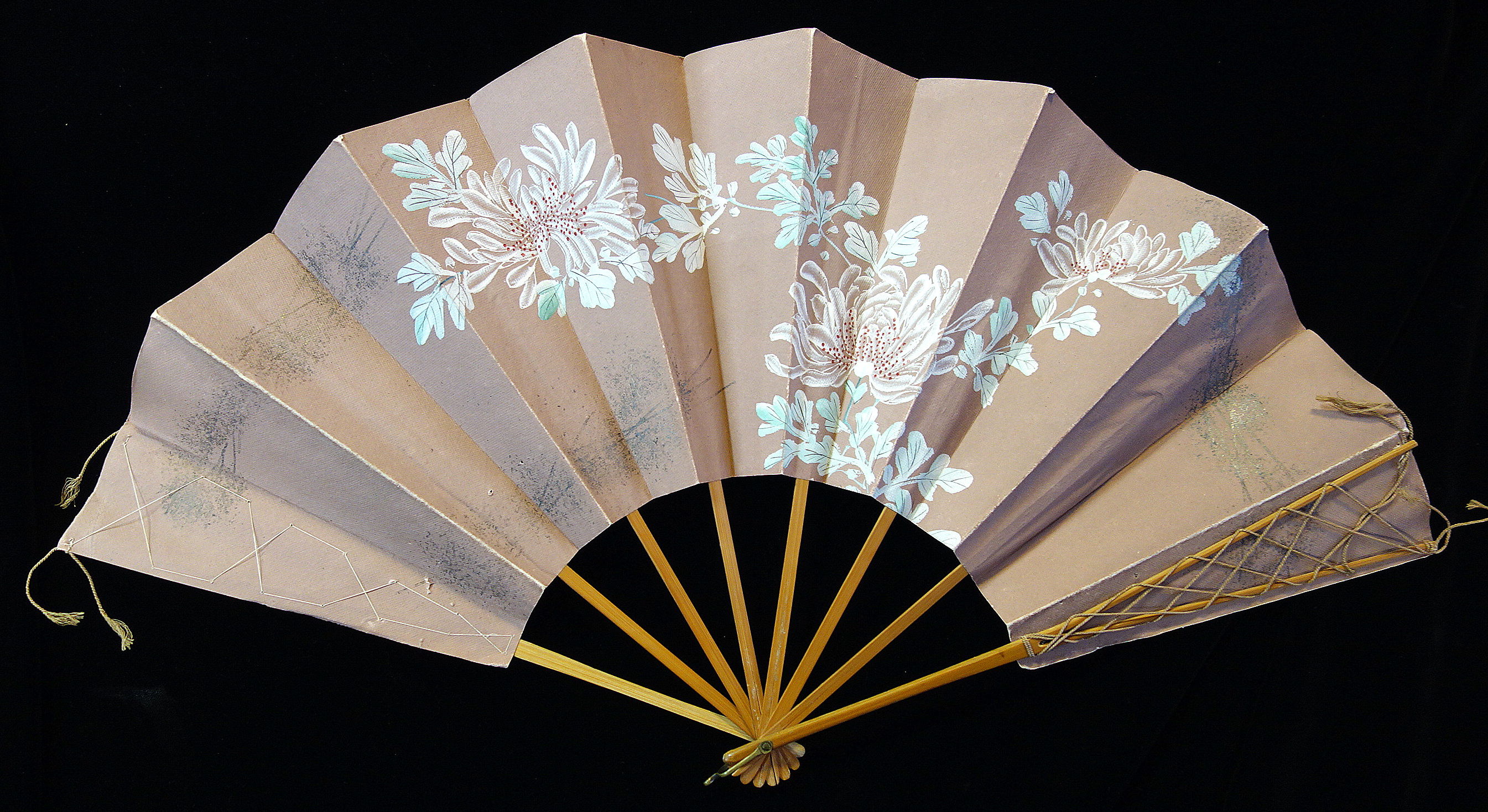 Printed Buena Vista Spring Hotel Menu on Lg. Watercolor decorated Paper Hand Fan 1894, Asian Motif - Chrysanthemum