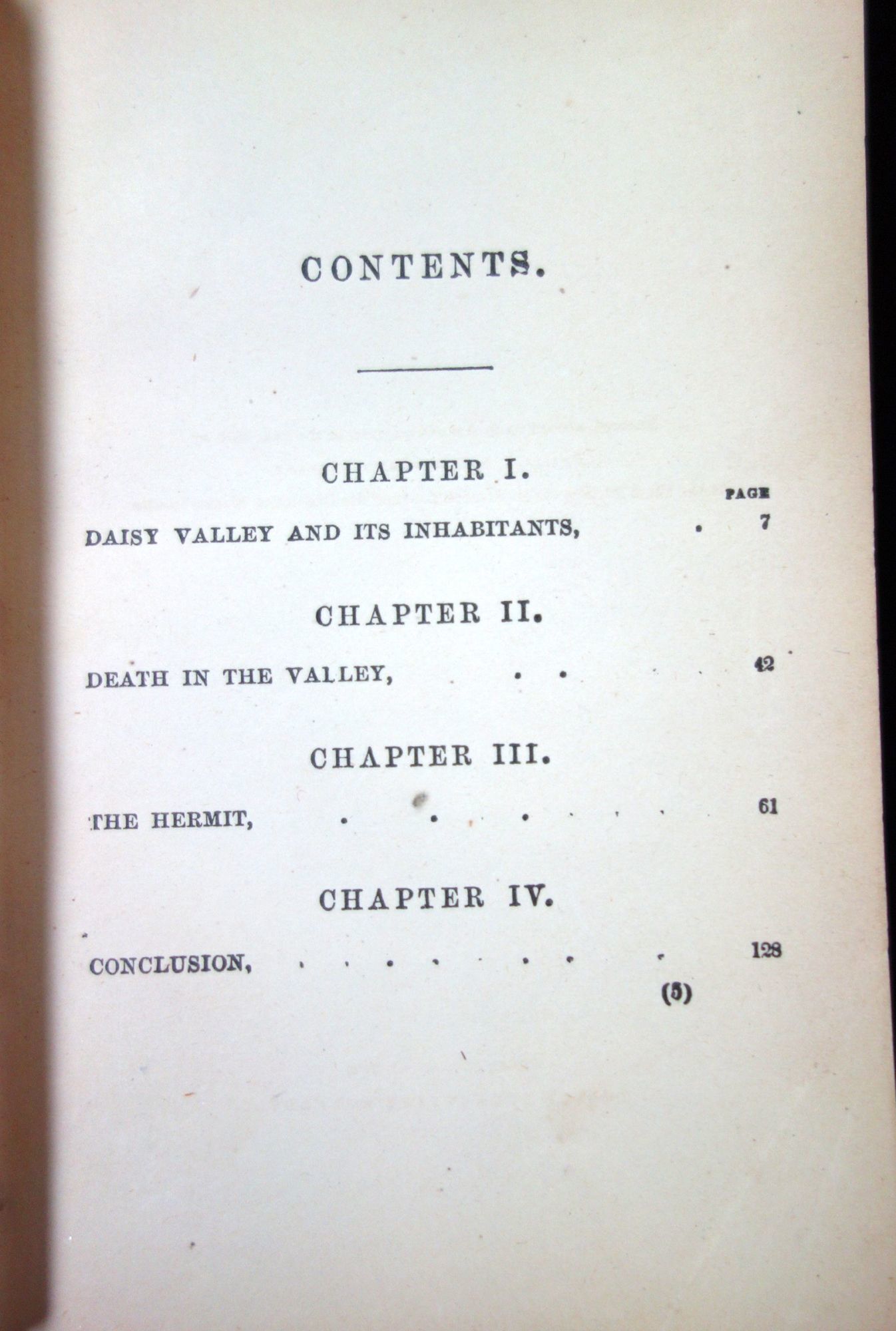 Chapters include Daisy Valley and its Inhabitants, Death in the Valley, The Hermit, and Conclusion.