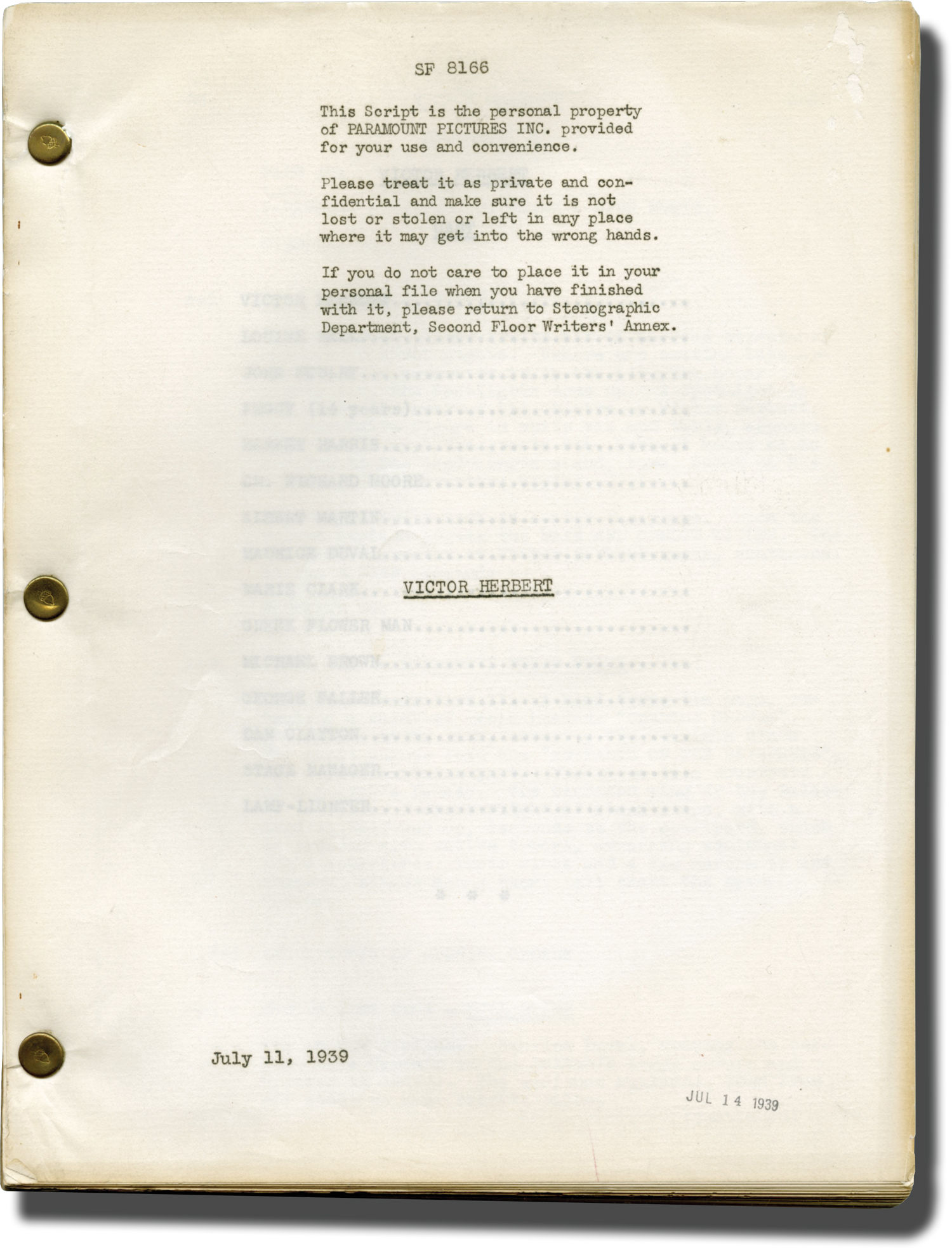 Hollywood: Paramount Pictures, 1939. Draft script for the 1939 film.