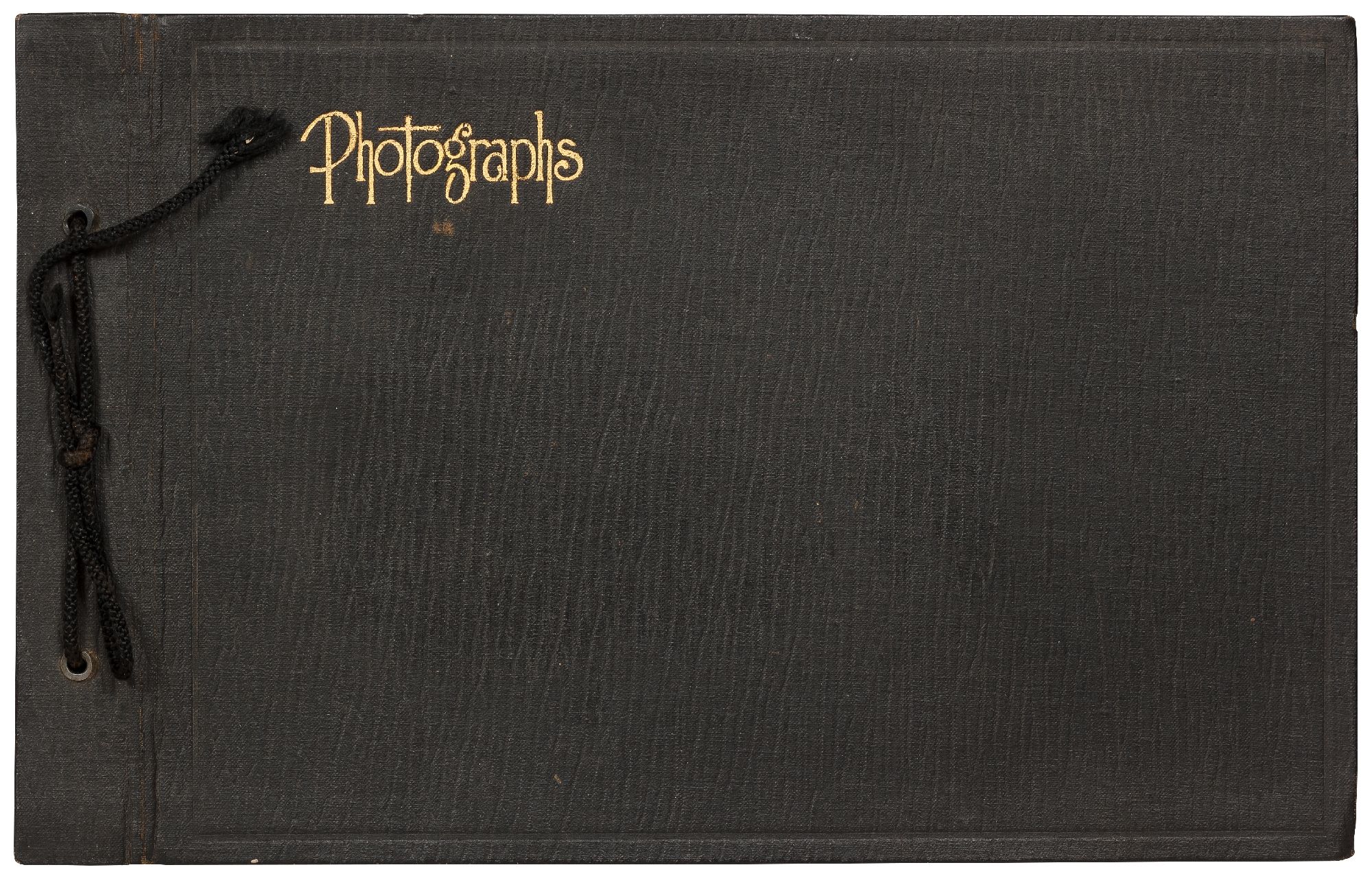 Wisconsin, 1920. Softcover. Near Fine. Oblong octavo. Measuring 11.5" x 7.25". String-tied flexible cloth with "Photographs" in gilt on top board. Very near fine, images with some occasional fading but overall well-composed and very good or better. Contains 327 gelatin silver images. Various sizes, are mostly some variation of 4.25" x 2.75". Most captioned in white album ink, some of the cations are rubbed, but they remain largely readable. Album maintained by a young Wisconsin woman documenting her school days, friends and travel. She was likely from Chilton, Wisconsin where the album begins in her later school years in 1917 and 1918, including shots of her girls' basketball team. Additionally there are groups of images from Appleton, Milwaukee, Menomonie, Oconto, Kaukauna, Peshtigo River, and Riverside, Wisconsin, where she traveled to visit relatives. There are a few images in Minnesota and in Escanaba, Michigan where she attended an Evangelist Revival Meeting. Additionally there are a few photos of uniformed men in France from 1918, sent from a school acquaintance or family member. It is likely she then taught grammar school children in Goodrich, Kansas, where she records images of young students, teachers, and others related to the school. One image near the end of the album is of the eight coffins of the Wolf Family who were murdered in 1920 in Turtle Lake, North Dakota. The image is a snapshot, but is a close variant of the images of the coffins that circulated in newspapers.