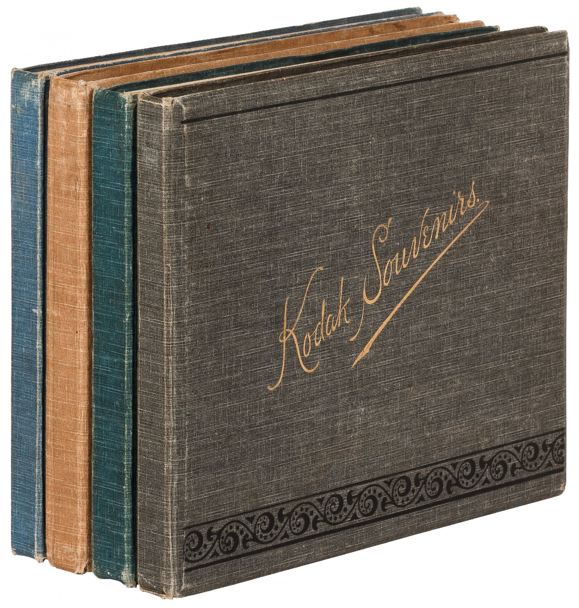 1903. Hardcover. Very Good. Four volumes. Oblong small quartos. Colored cloth over stiff paper boards with "Kodak Souvenirs" stamped in gilt on each album. Contains 398 sepia-toned or black and white gelatin silver photographs measuring between 2" x 3" and 4" x 6" with captions. Very good albums with rubbing and worn corners with near fine photographs.