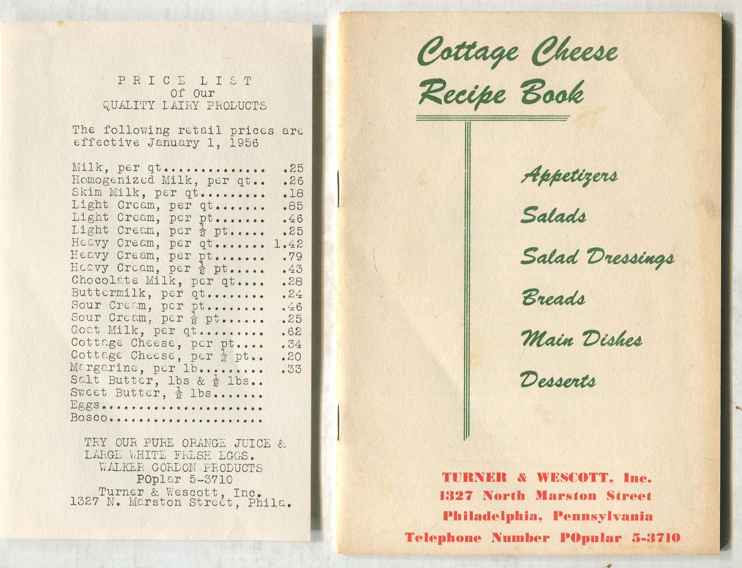 Philadelphia: Turner & Wescott (Milk Industry Foundation), 1956. Softcover. Very Good. First edition. 30pp. Stapled wrappers. Foxing on wrappers, else near fine. Laid in is an original price list for dairy products sold at Walker Gordon Products in Philadelphia effective January 1, 1956.