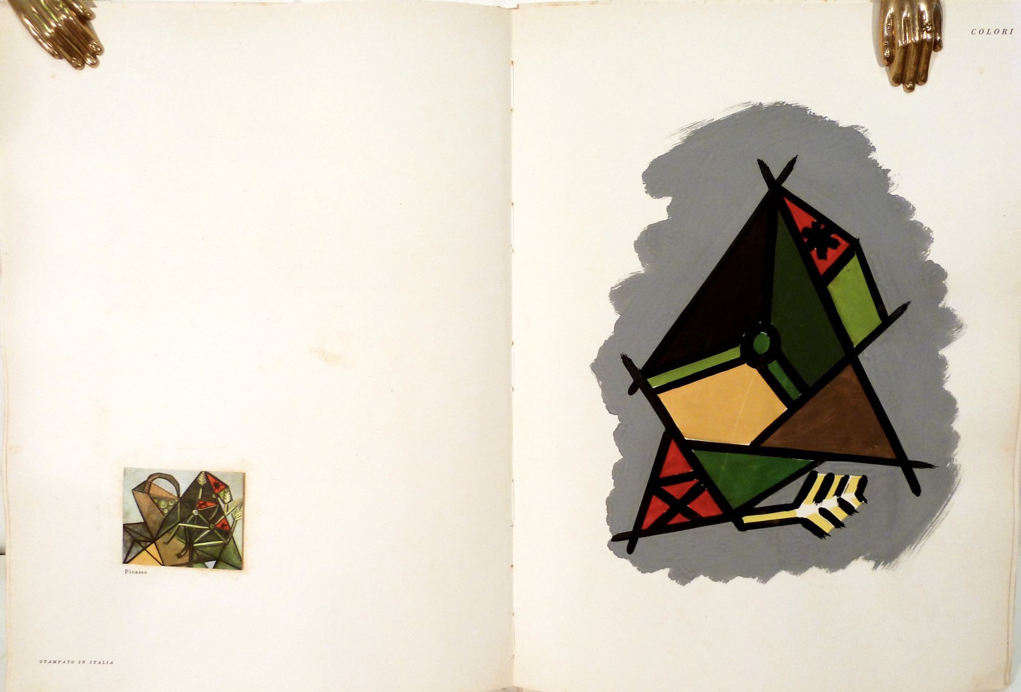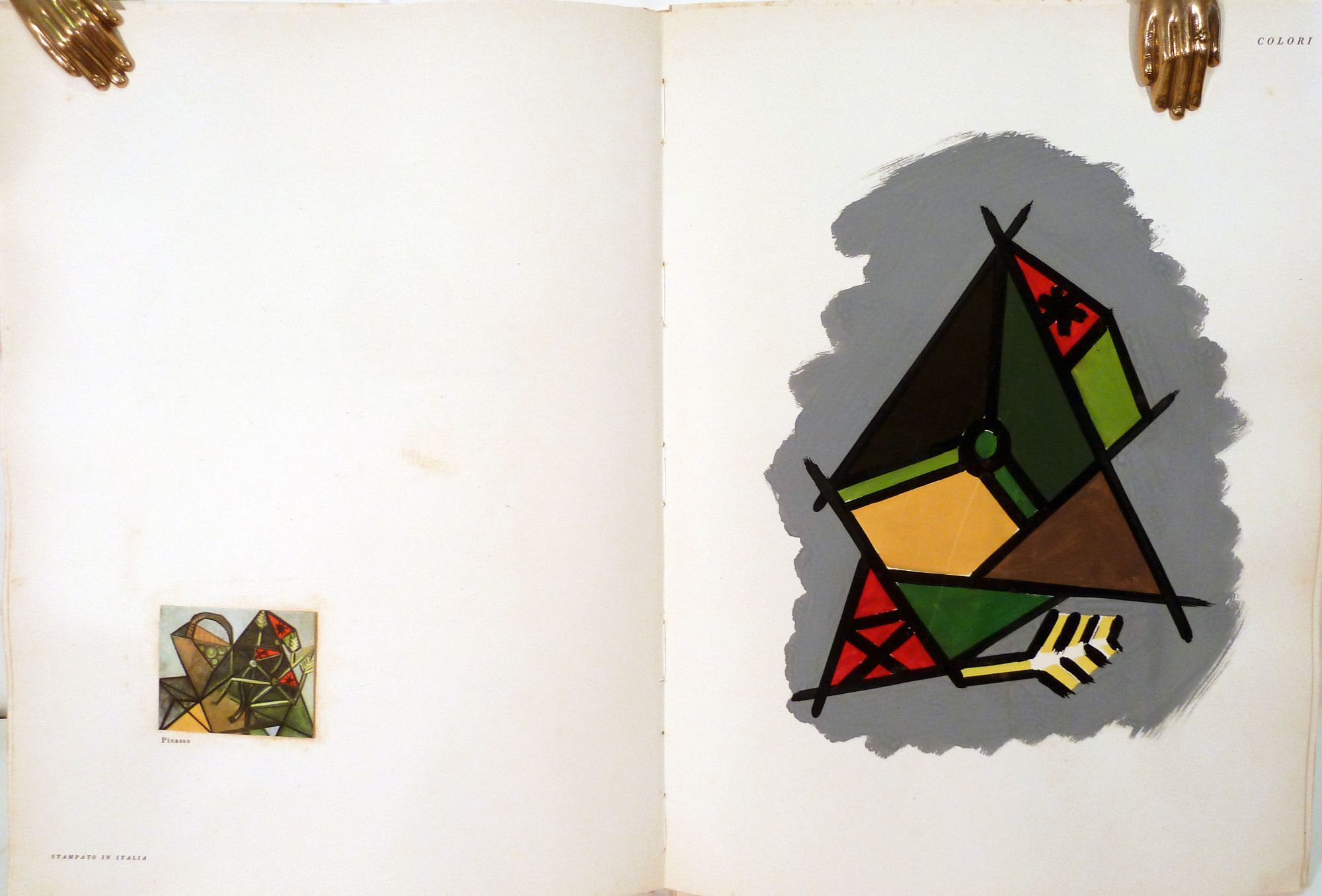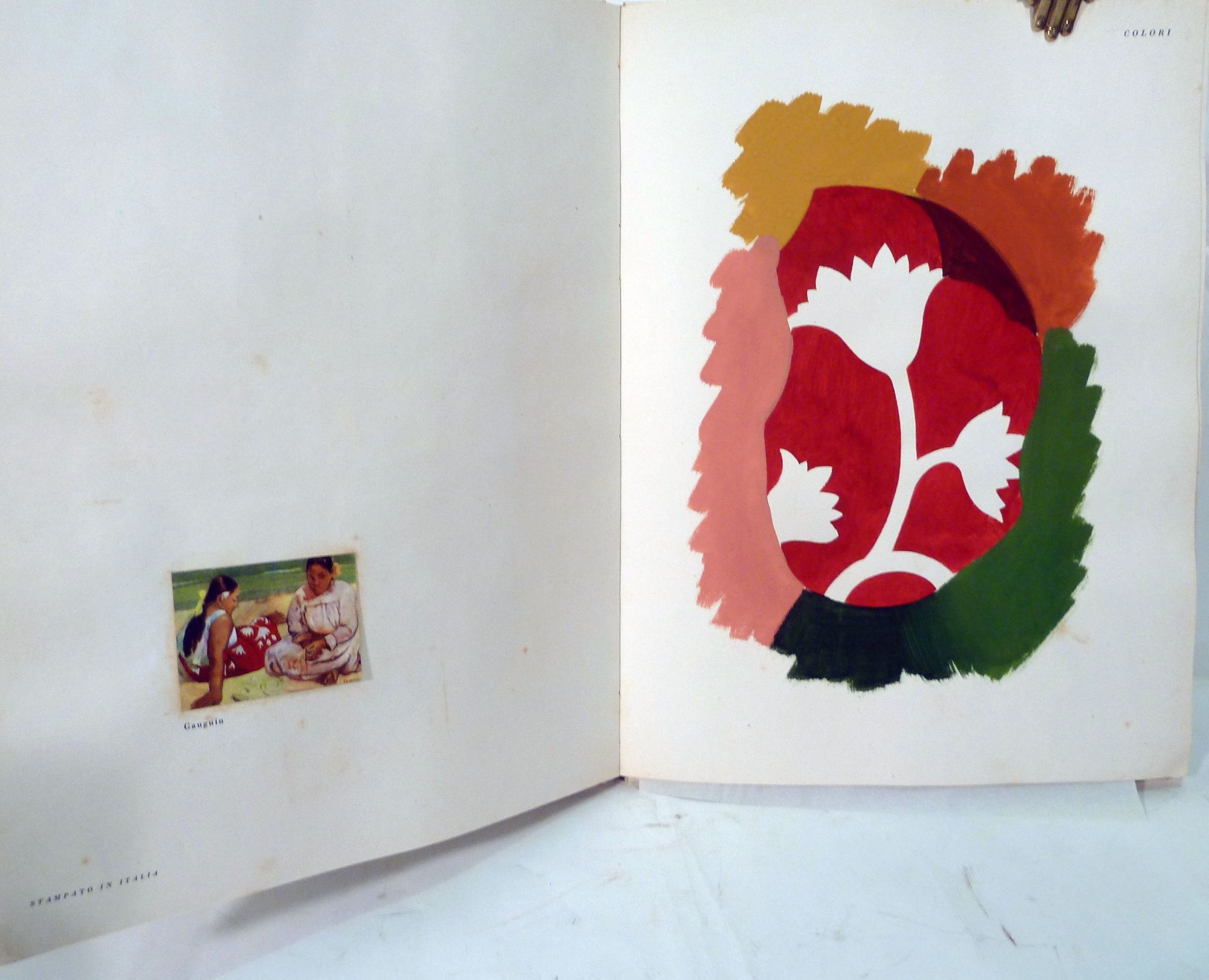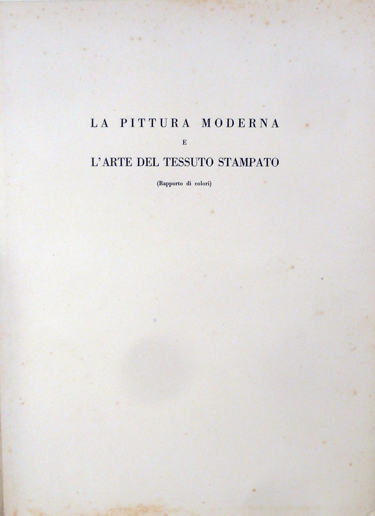 Torino: Ente Moda, 1949. First edition. Hardcover. Orig. white boards. Very good housed in worn plain white box. Unpaginated. Thirty leaves. Folio, 36 x 26.5 cm. Limited edition, copy 5 of 150. An unusual, stunning combination, presenting tipped-in color reproduction of art works by prominent modern artists with an accompanying full page color lithograph portraying essential colors in the latter as designs for printed fabric. Artists represented include Bonnard, Braque, Chagall, Derain, Dufy, Gauguin, Matisse, Picasso, Van Gogh, et al. The first three leaves are combinations of two and three color lithographs of designs for printed fabric. Text in Italian.