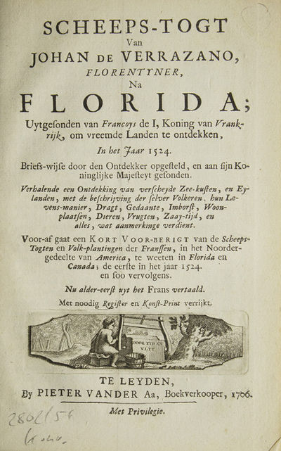 Scheeps-togt van Johan de Verrazano, Florentyner, na Florida; Uytgesonden van Francoys de I, van Vrankrijk, om vreemde lande te ontdekken in het jaar 1524. Briefs-wijse door den ontdekker opgesteld, en aan sijn Koninglijke Majesteyt gesonden. Verhalende en ontdekking van verscheyde zee-kusten, en eylanden, met de beschrijving der selver volkeren, hun levens-manier, dragt, gedaante, imborst, woon-plaatsen, dieren, vrugten, zaay-tijd, en alles wat aanmerkinge verdient. Voor-af gaat een koort voor-berigt van de scheeps-togten en volk-plantingen der Franssen, in het noorder-gedeelte van America, te weeten in Florida en Canada; de eerste in het jaar 1524 en soo vervolgens