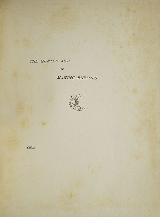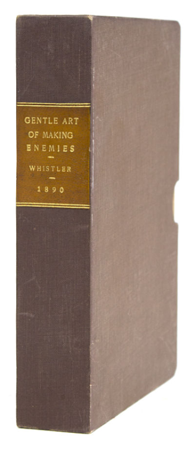 London: William Heinemann, 1890. First "Whistler" edition. 292 pp. Printed by the Ballantyne Press. 1 vols. Square 8vo. Quarter yellow cloth and printed tan boards. Rubbed, some scattered foxing. Bookplate of Alexander Stuart Graham and Blaihame. In brown cloth slipcase with leather label. First "Whistler" edition. 292 pp. Printed by the Ballantyne Press. 1 vols. Square 8vo. Seitz, pp. 21-22