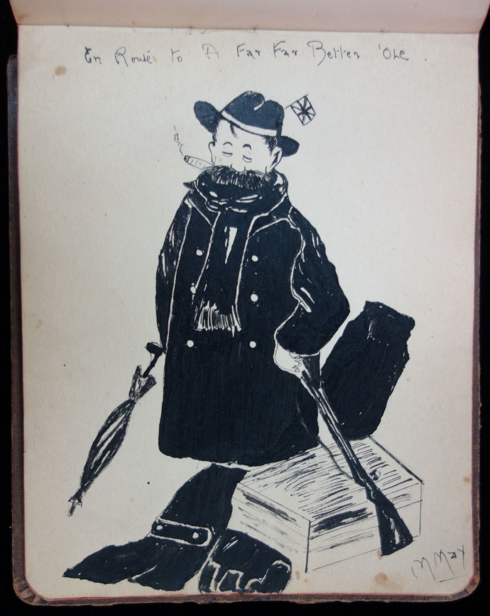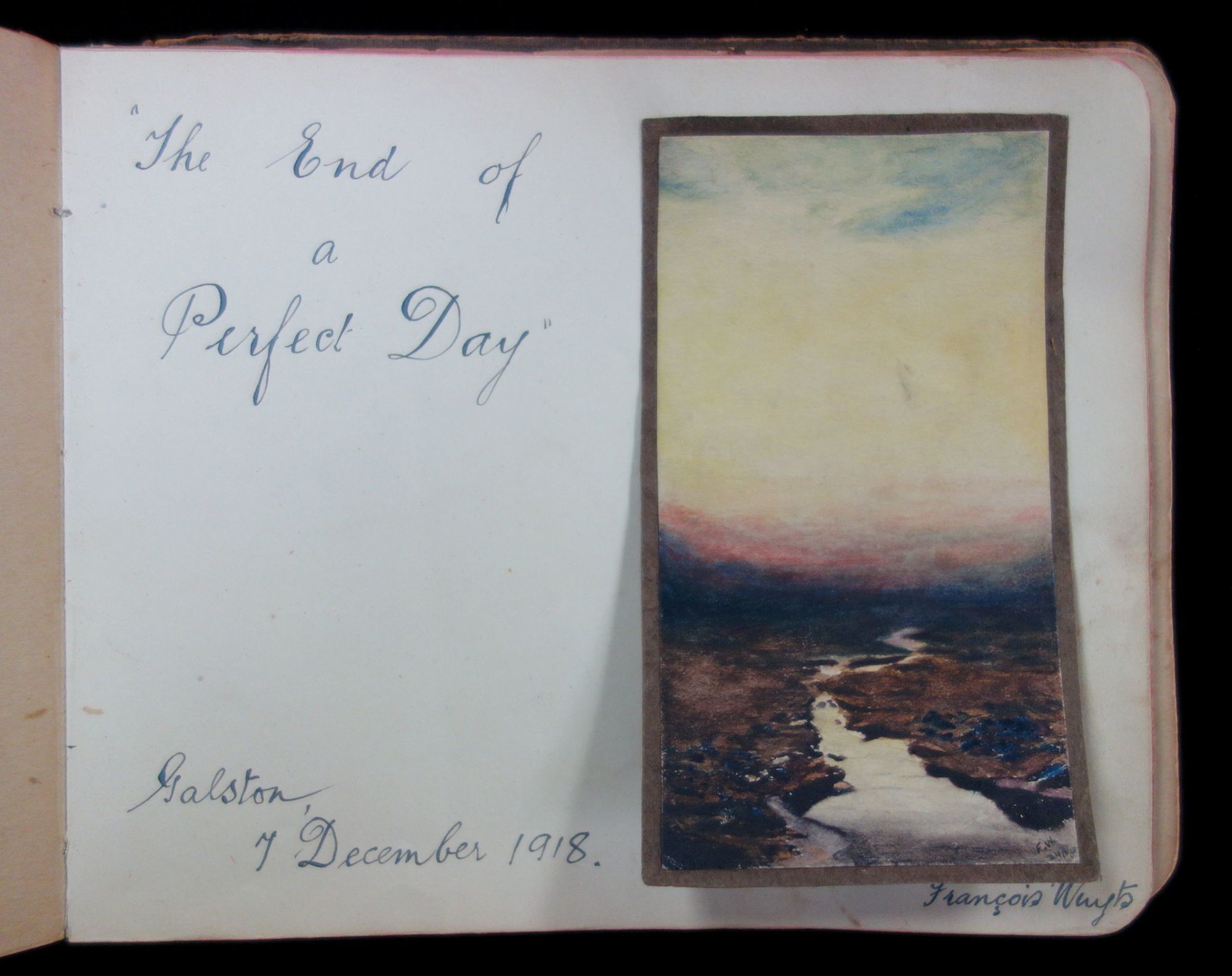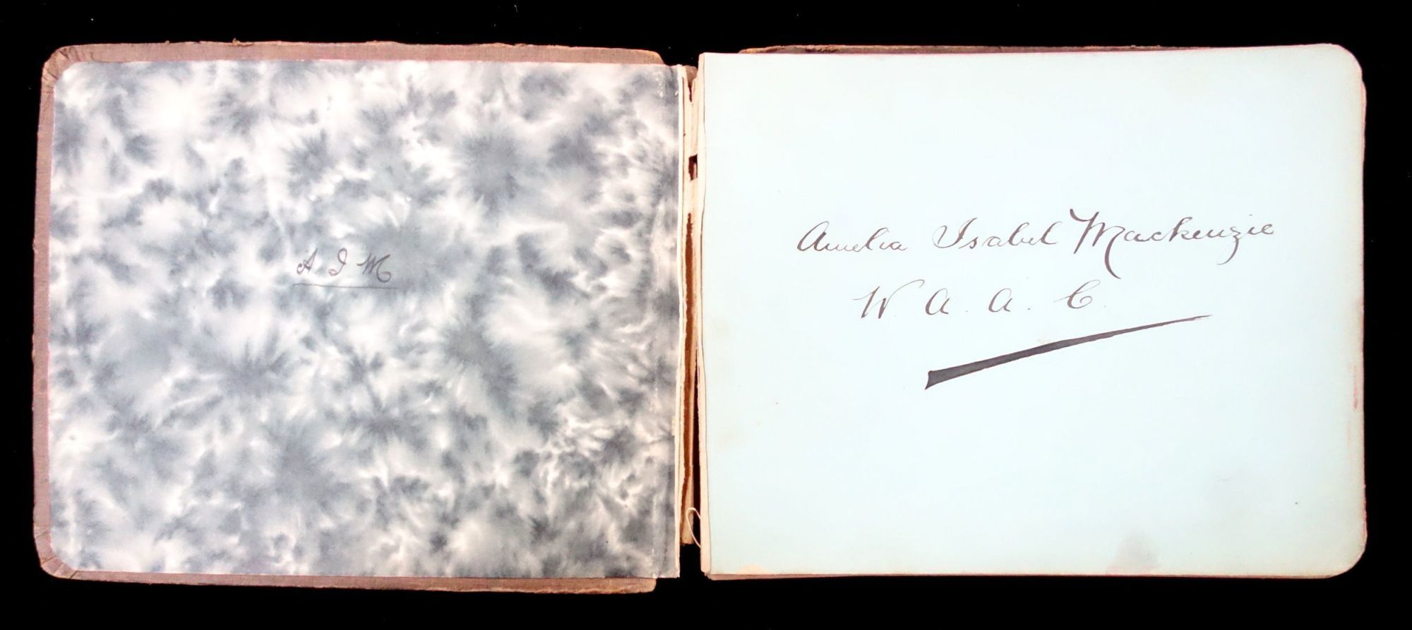 A astonishing friendship album filled with quotes, verses, and drawings belonging to Amelia Isabel Mackenzie, a member of the W.A.A.C. The Women's Army Auxiliary Corps (1917-1918), which later became known as Queen Mary's Army Auxiliary Corps (1918-1920) was the women's unit of the British Army during and immediately after the First World War. It was formally instituted on 7 July, 1917 and between January 1917 and November 1918. over 57,000 women served in the unit. The corps was disbanded in September 1921 and unfortunately most of the service records of the corps were destroyed during a German air raid in September 1940.