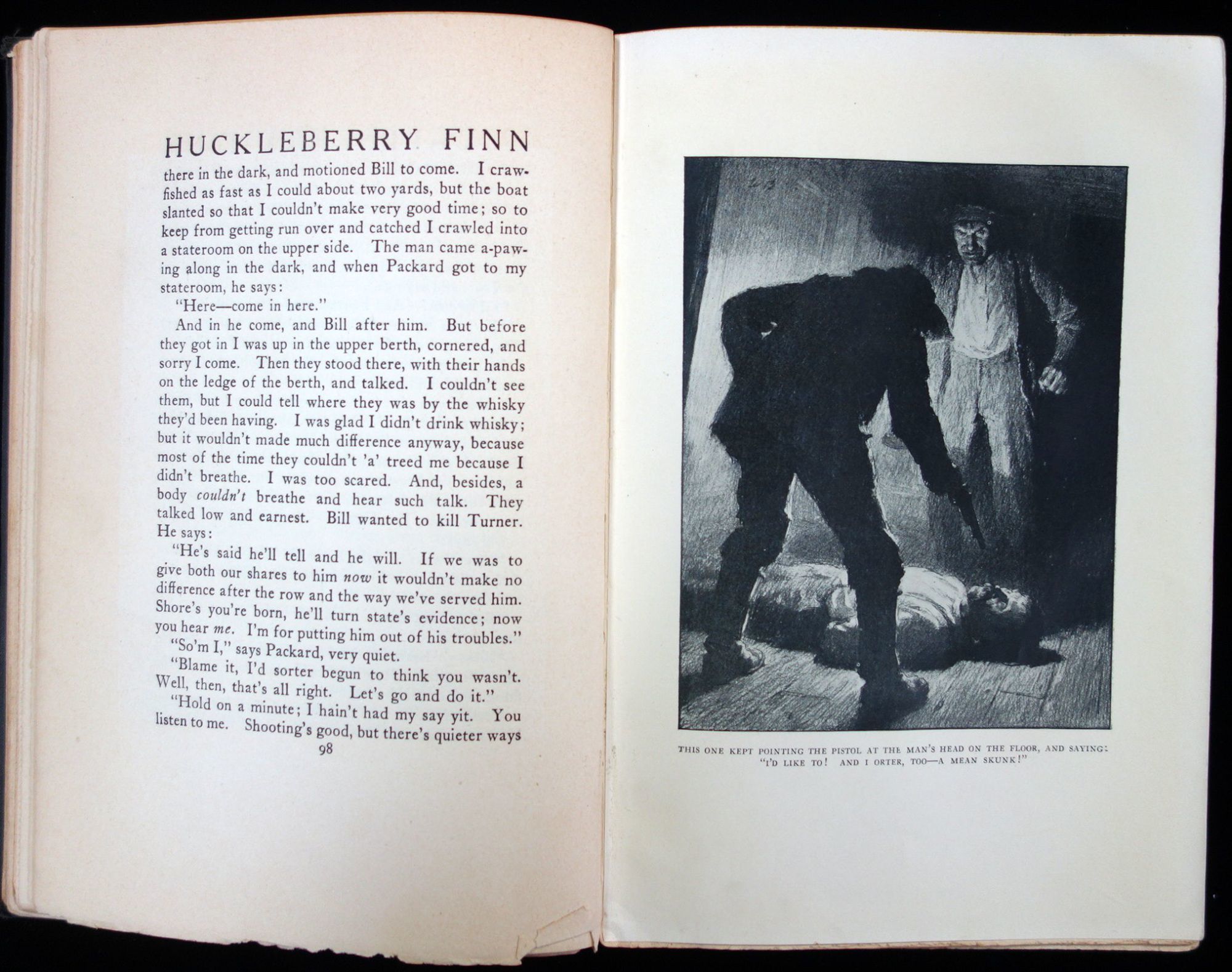 The classic story by Mark Twain. A nineteenth-century boy from a Mississippi River town recounts his adventures as he travels down the river with a runaway slave, encountering a family involved in a feud, two scoundrels pretending to be royalty, and Tom Sawyer's aunt who mistakes him for Tom.