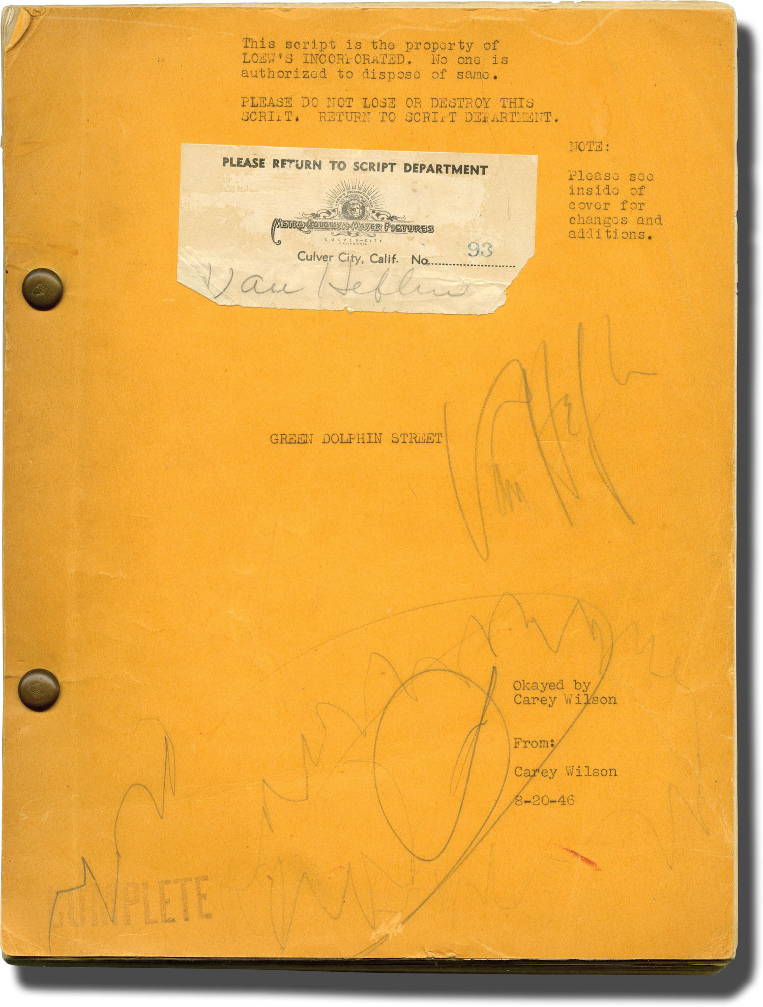 Green Dolphin Street (Original screenplay for the 1947 film, Van Heflin's working copy)
