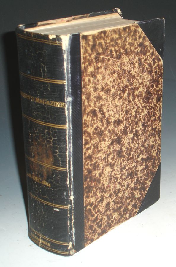 New York: Frank A. Munsey, 1894. Thick Quarto. The long article "Wall Street" (321-362) with a history of Wall Street with biographical sketches of te Vanderbilts, Jay Gould, Henry Clews and the key words used in the trade of the 1890's, the role of the telegraphers, whose wires kept investors coast--to-coast informed of the latest stock prices, the "ghosts" of Wall Street--the four men whose net worth in the late 1880's was $25,000,000 but now were beggars hoping to extract some money from those who once looked up to them--one of the most useful examinations of an era where some investors made fortunes while others became paupers but the commissions were always a guarantee from those who collected them. Having the complete Jan-Dec Munsey's is rare in itself, which means a small part of the last quarter Oct-Dec, 1893 is present. Articles on literature (with full page photographs of Thomas Hardy and A. Conon Doyle) as well as the stars of the New York Stage, biographies of the artists, as well as special articles on canoes, lumberjacks, mountain climbing in the Alps, along with others which picture the Gilded Age at its heigth.Bound in 3/4 black morocco over marbled paper covered boards, spine ruled an lettered in gilt, edges rubbed. A very good copy.
