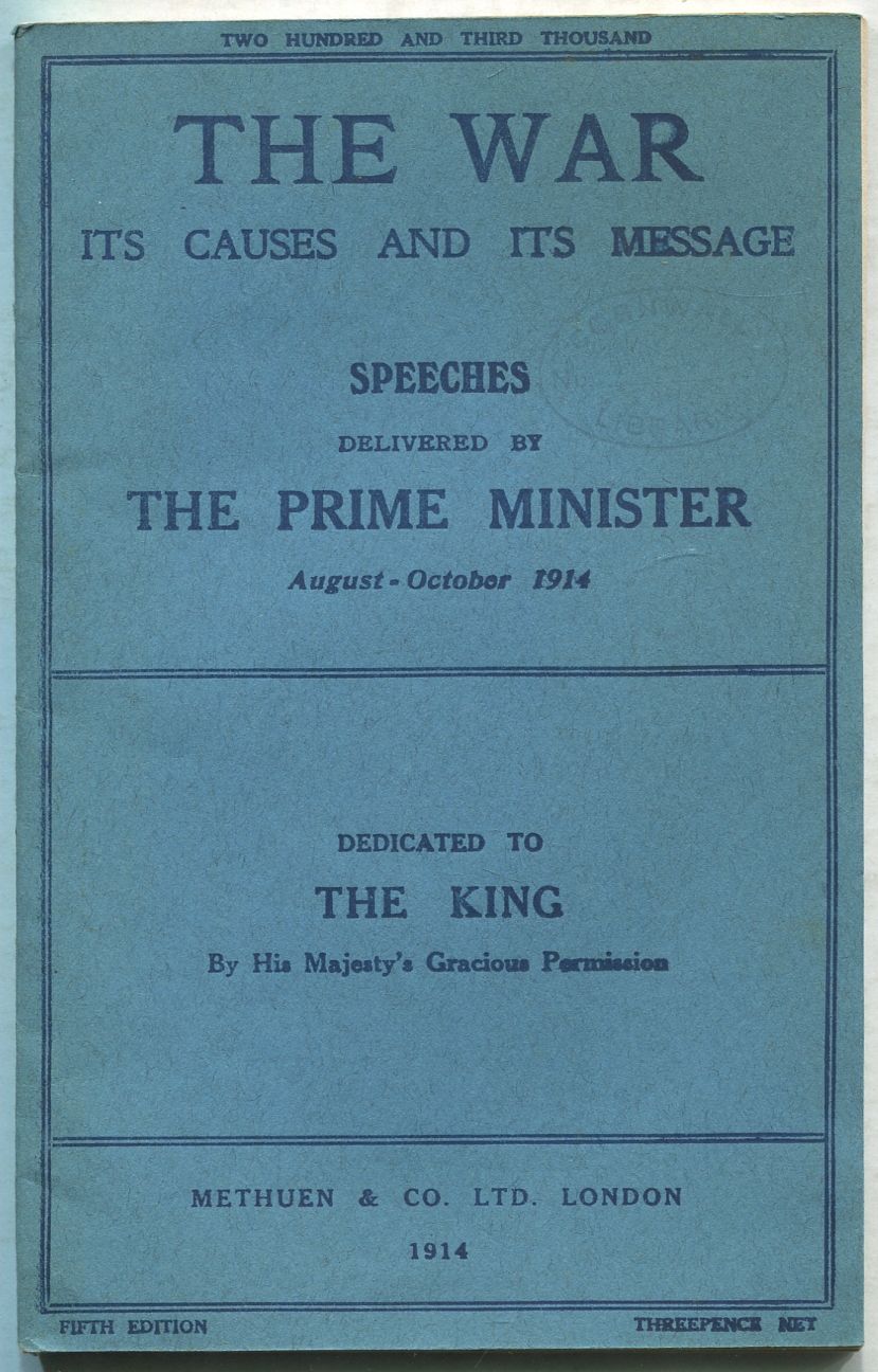 The War: Its Causes and Its Message: Speeches Delivered by The Prime Minister, August - October, 1914