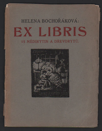 Brno: Karel Novotny and Uh. Hradisti, 1925. First edition. SIGNED. One bookplate is missing. Fourteen tipped-in bookplates mounted on green paper, housed in a folding printed paper portfolio, with folded sheet comprising title page, introduction, and colophon laid in. List of plates pasted to verso of rear portfolio cover (as issued). Three-panel portfolio has split along most of its length at both folds.Toning and short tears to portfolio.The bookplates themselves, printed on a variety of papers, are crisp and clean. Two of the plates are mounted on a darker, slightly smaller paper, implying that they may originally come from a different copy. Portfolio measures 16.5 cm x 21 cm closed; mounting papers measure 15 cm x 20.5 cm; bookplate measurements vary. Signed by Bochorakova-Dittrichova in pencil on title page of introductory leaflet. Number 100 of an edition of 150.
