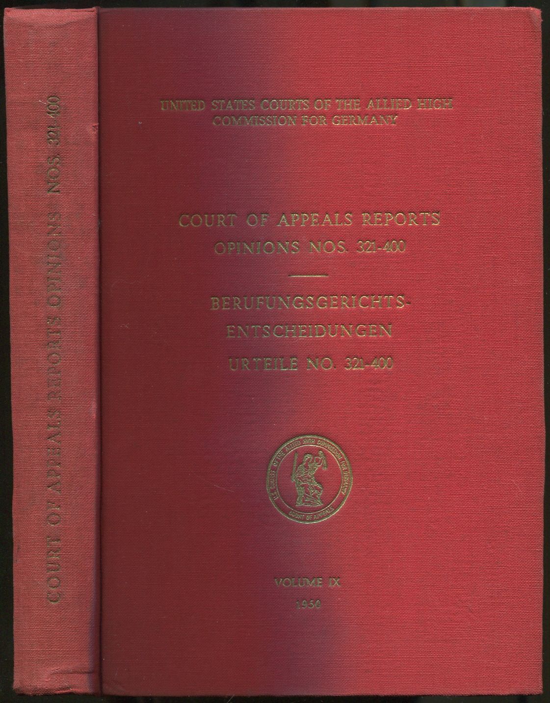 Court of Appeals Reports Opinions Nos. 321-400: Berufungsgerichts - Entscheidungen Urteile No. 321-400: Volume IX, 1950