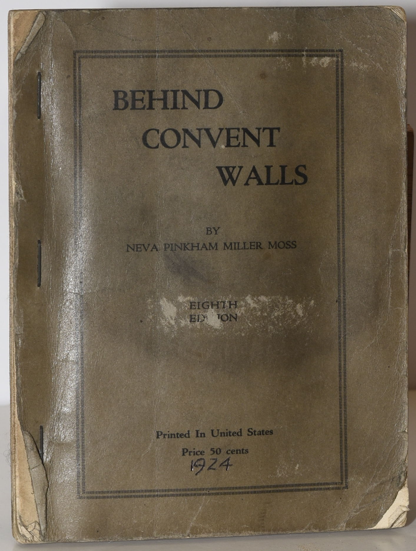 Self-published, 1924. Soft Cover. Very Good binding. This controversial pamphlet caused a stir when Neva Moss went on the lecture circuit in the 1920’s. She portrayed herself as an “escaped nun” and characterized convents as “Roman prison houses” and “slave houses”. Ms. Moss was at the “House of the Good Shepherd” in Detroit, and the booklet is illustrated with many black and white photographs of that facility. She was actually arrested when lecturing in Australia for attempting to give a lecture “for women only”. 145 pp. and uncommon, with only six copies found on OCLC. Very Good binding.