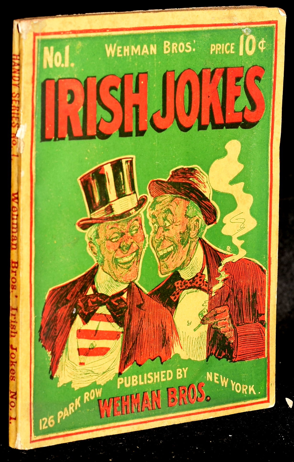 New York: Weyman Bros, 1906. Soft Cover. Very Good binding. Containing a collection of new and original Irish jokes, stories, and rare gems of wit and humor. Pulp joke book from the early years of the last century, with a quite remarkable caricature of a pair of Irishm3n on the front colored wrapper. 64 pp. with ads on the inside of the wrappers. Not common, with a only three copies found on OCLC. A bright copy of a fragile item. Very Good binding.