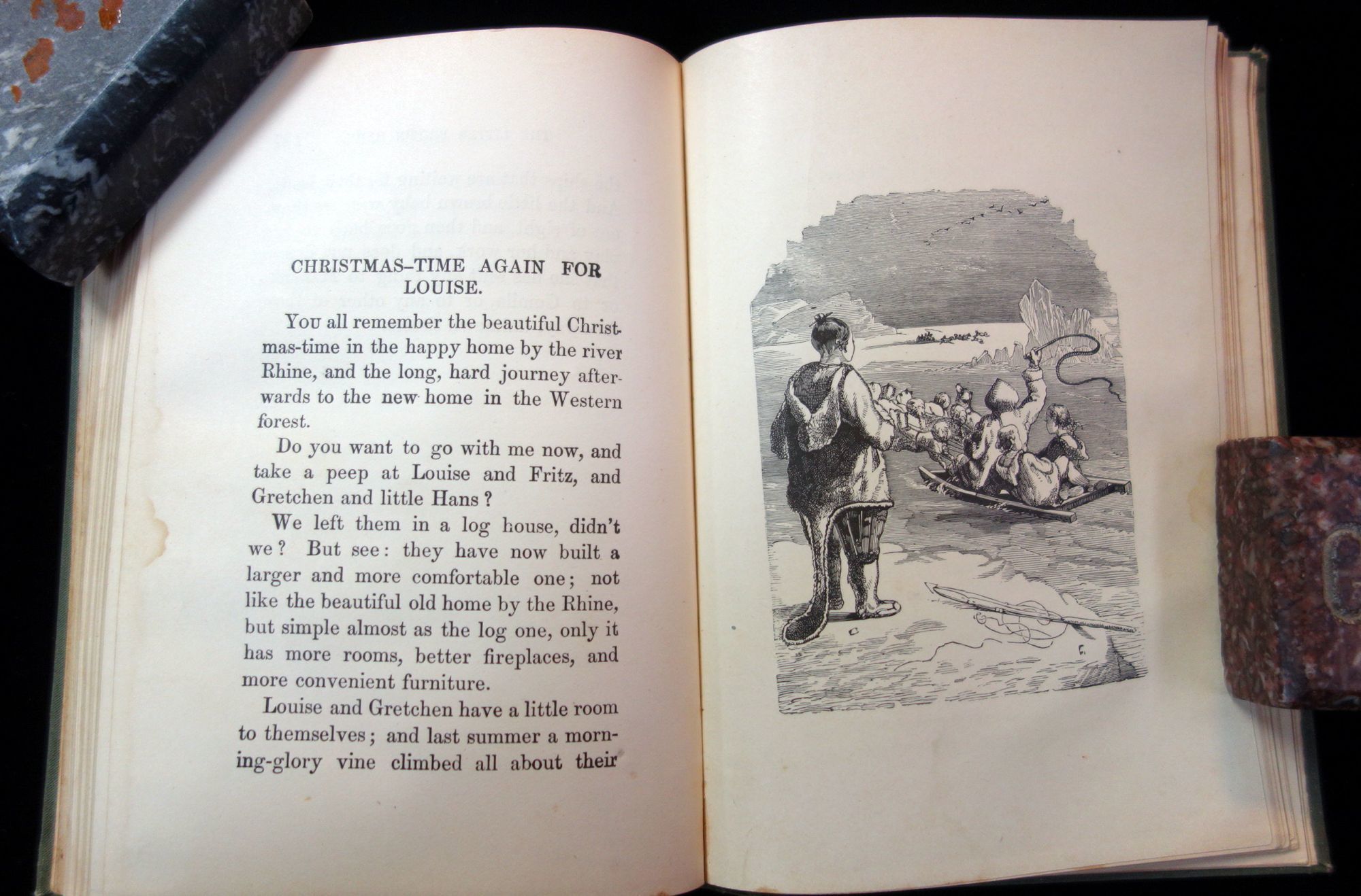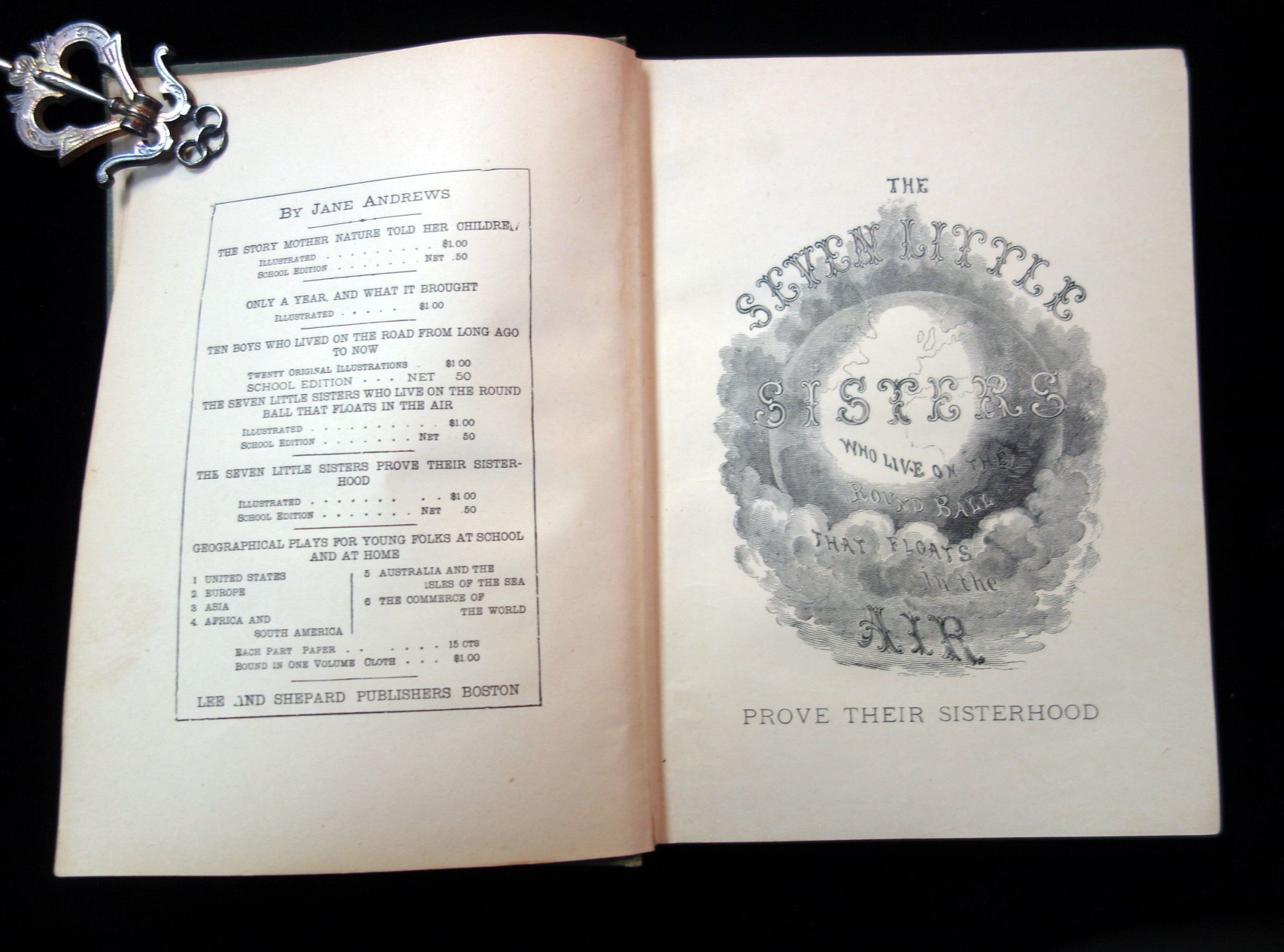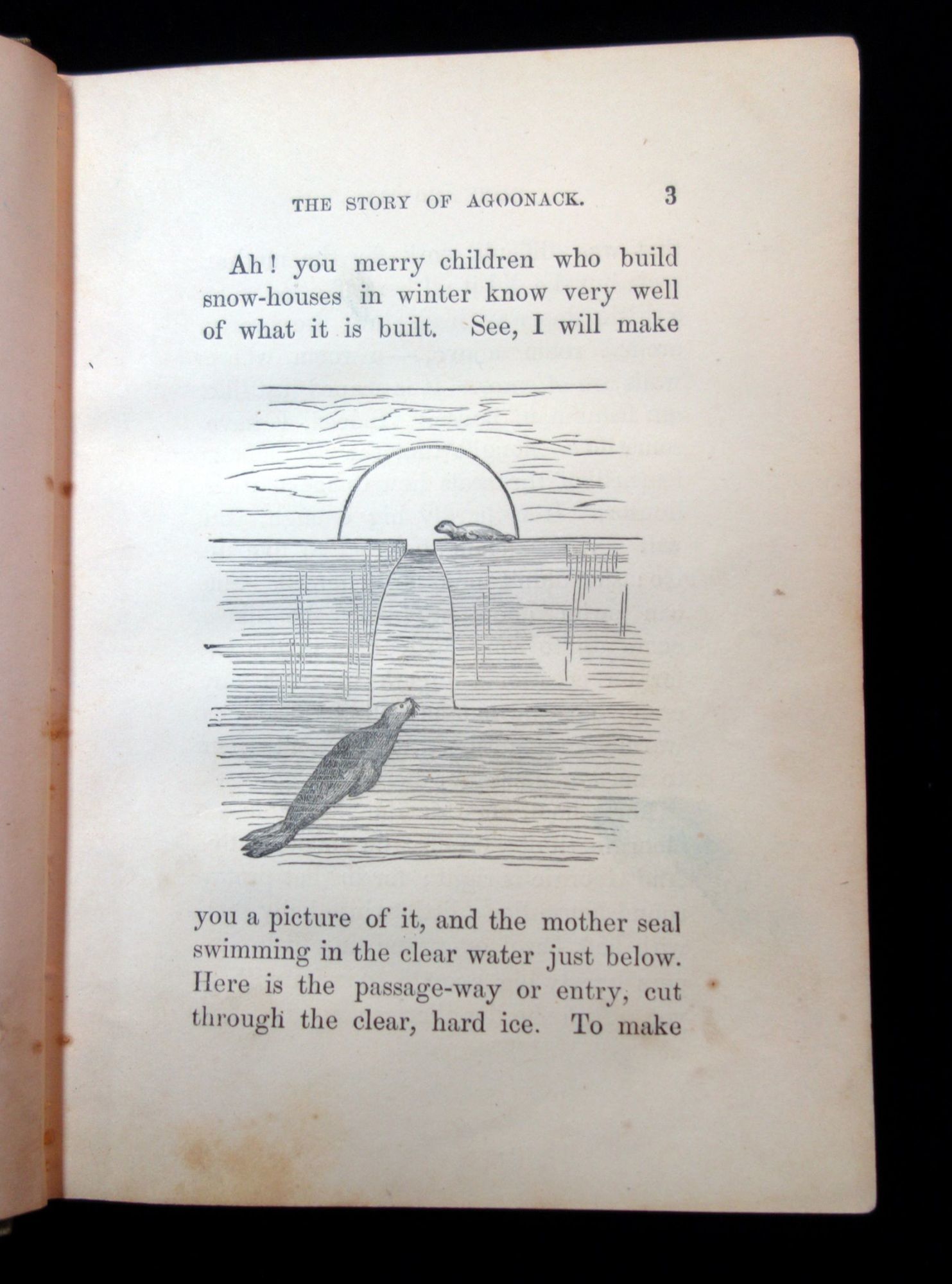 Boston: Lee & Shepard Publisher, 1892. A 162 paginated book tells the story of seven young girls, each representing seven different nationalities in order to showcase how different people around the world have different mannerism and customs. The book is divided into six parts: Agoonack, and Her Sail Upon the Ice Island, A Long Journey Through a Strange Island, What Was Gemila Doing All This Time?, New Work for Pen-se and Lin, Can the Little Brown Baby do Anything? and Christmas-time Again for Louise. There are seven, including the cover page, charming black and white line drawings throughout the book.