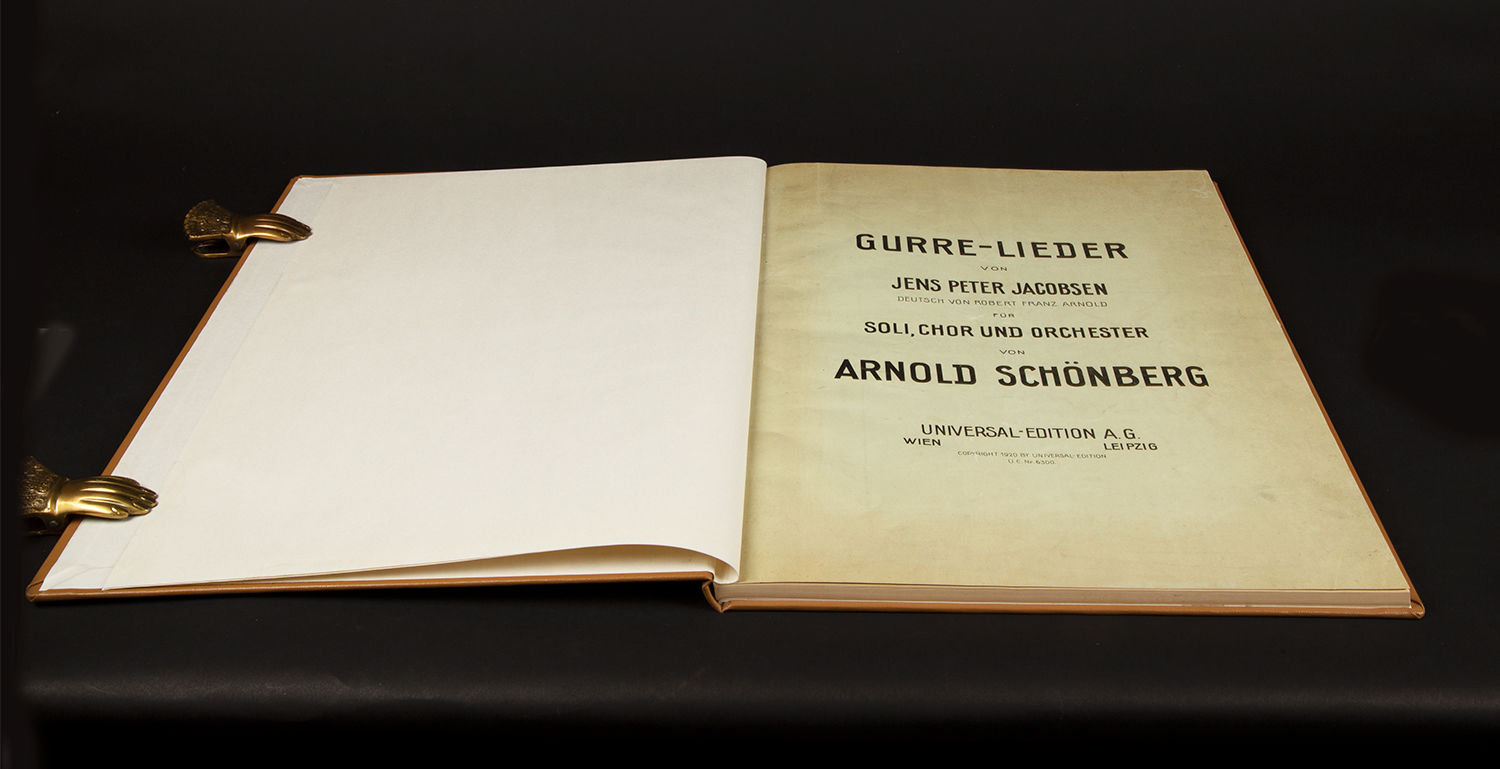 The Danish poet Jens Peter Jacobsen (1847-1885) wrote his Gurresange in 1871, and a German translation was made by Robert Franz Arnold (1872-1938). Schoenberg first set these poems, which depict the love of King Waldemar and Tove, as a song cycle for voice and piano in 1900. He then began setting the entire cycle in a choral-orchestral work of Mahlerian proportions, composed and orchestrated over a decade. Scored for vast vocal and instrumental forces, it required custom 48-stave paper to fit all the parts. The Gurre-Lieder represents a culmination of the aesthetics of the Romantic period–musical language had already begun to shift into the kaleidoscope of 20th-century styles. Schoenberg, of course, was a dominant force in this shift, a fact he clearly recognized: