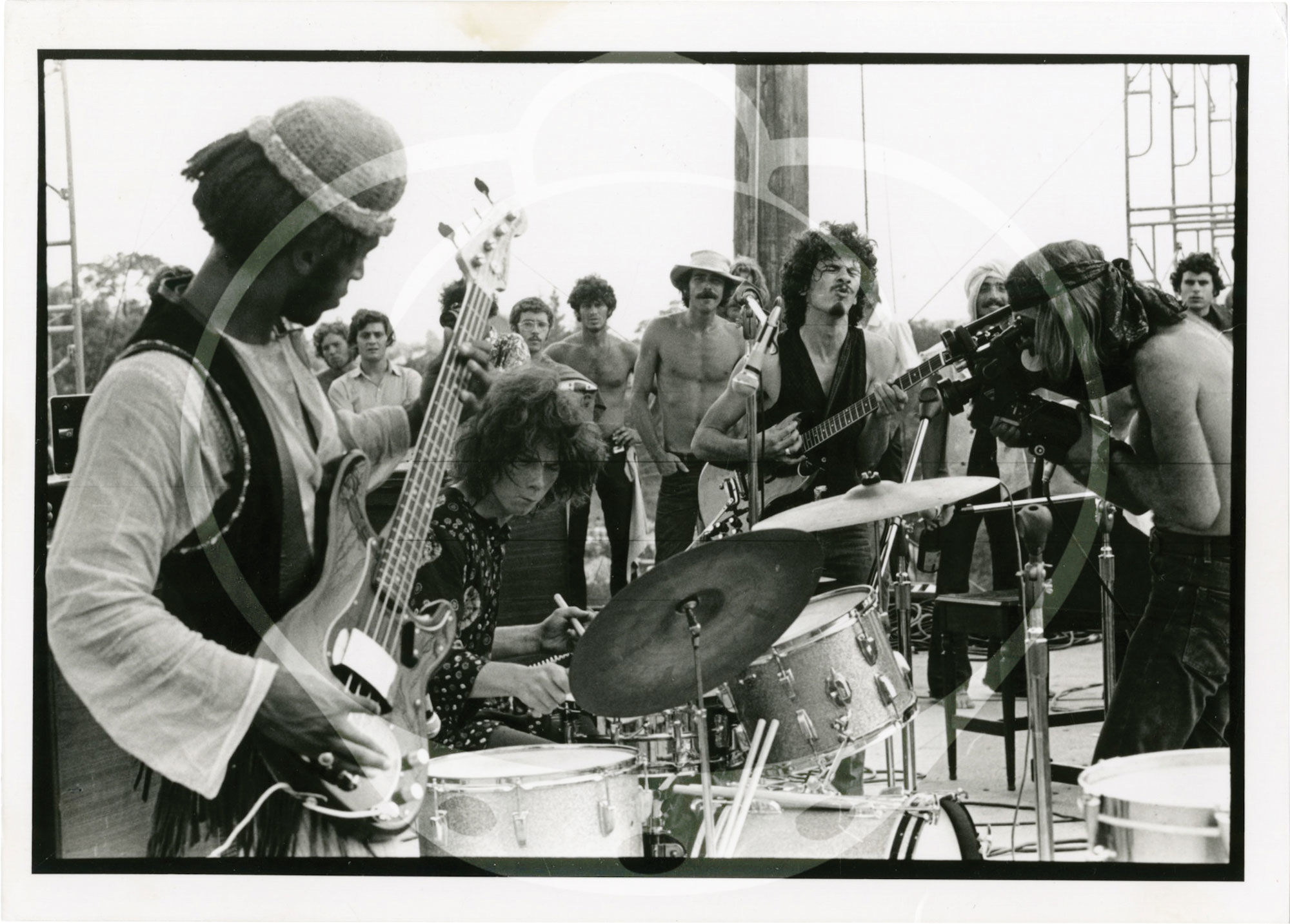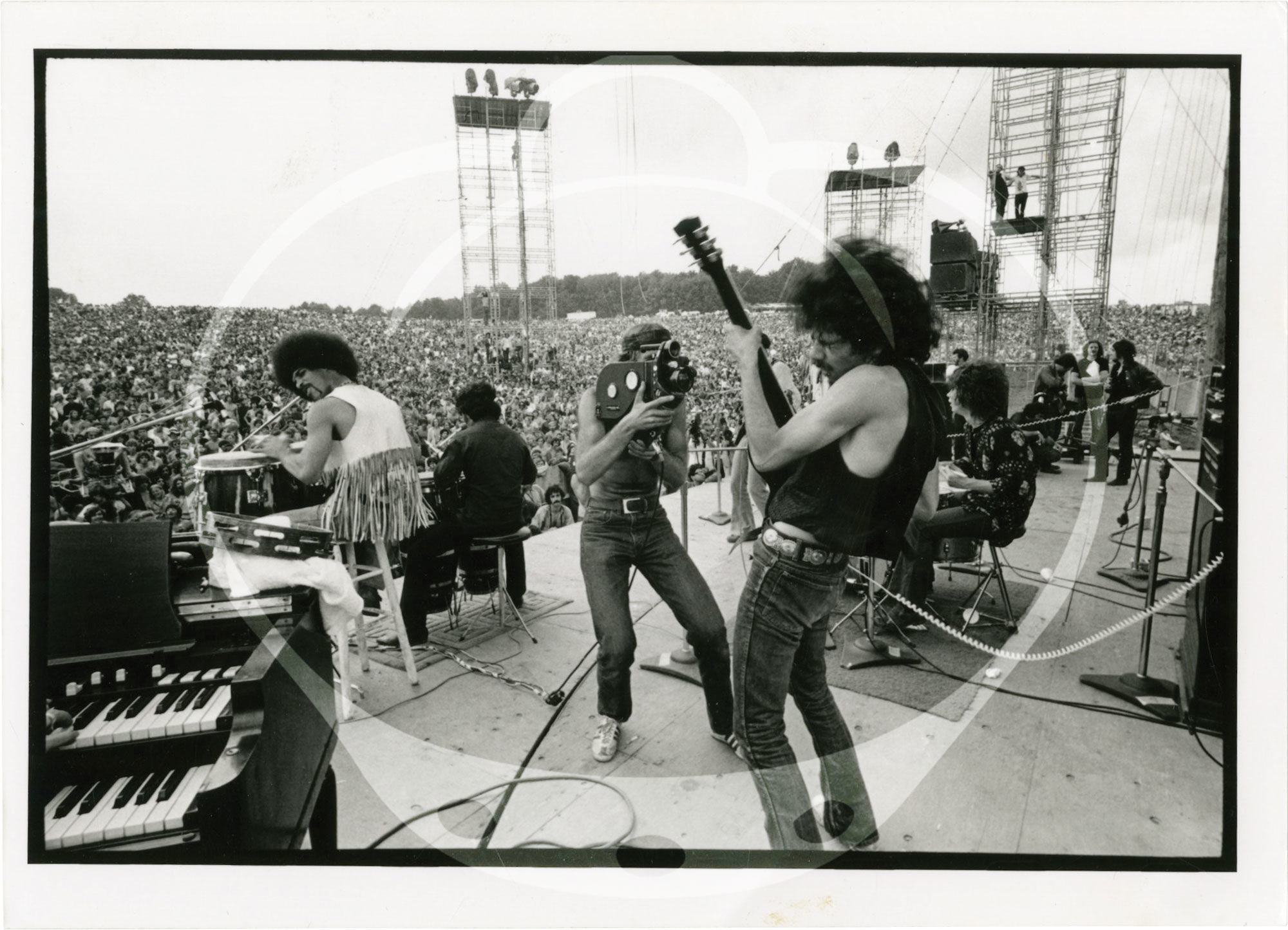 Artists represented include Bob Dylan, The Rolling Stones, The Who, Bob Dylan, Joni Mitchell, Sly and the Family Stone, Santana, Jim Morrison, Tina Turner, The Allman Brothers Band (including standalone shots of Duane Allman), and others. The Santana photos are especially notable, as the band, already a live sensation, is performing at Woodstock, just ahead of the release their first album.