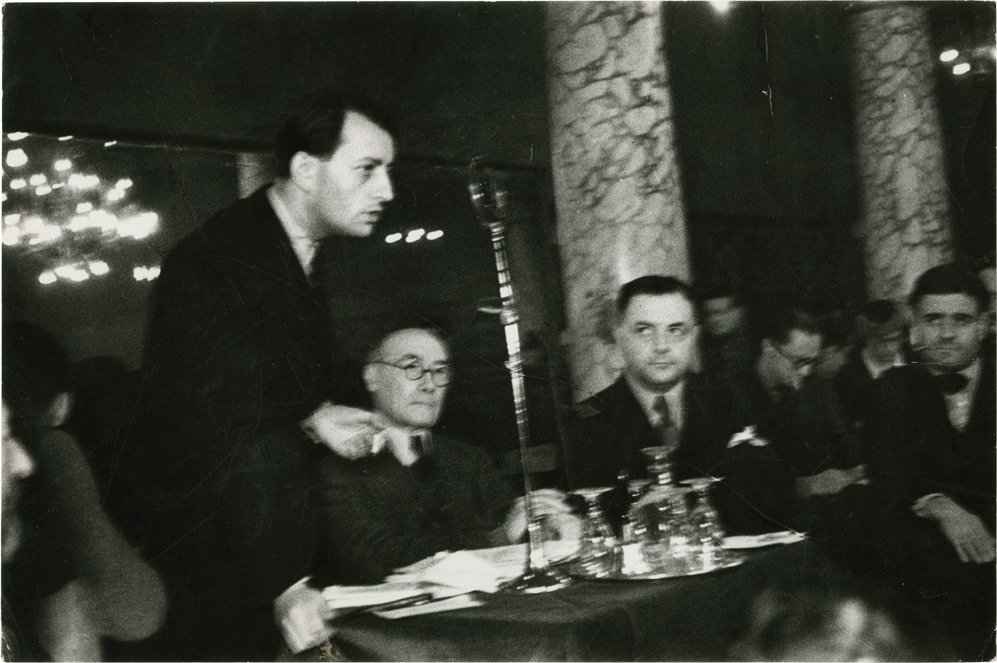 Likely a photograph from a meeting of the Popular Front, a French alliance of various left-wing movements, including communists and socialists, during the interwar period.