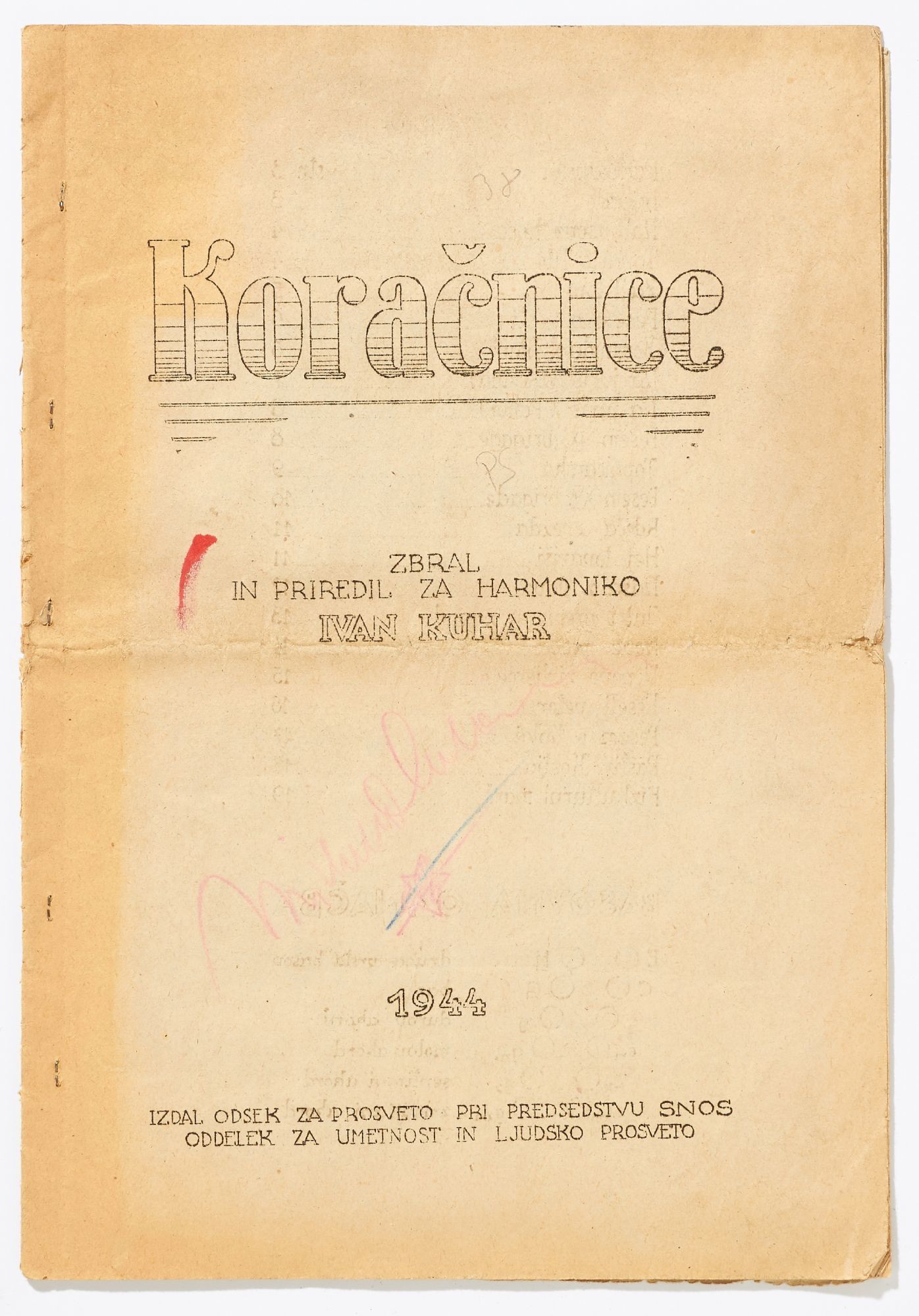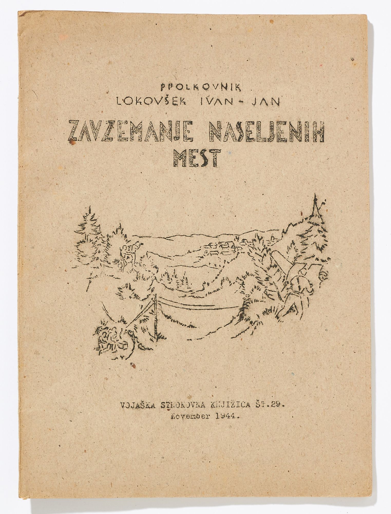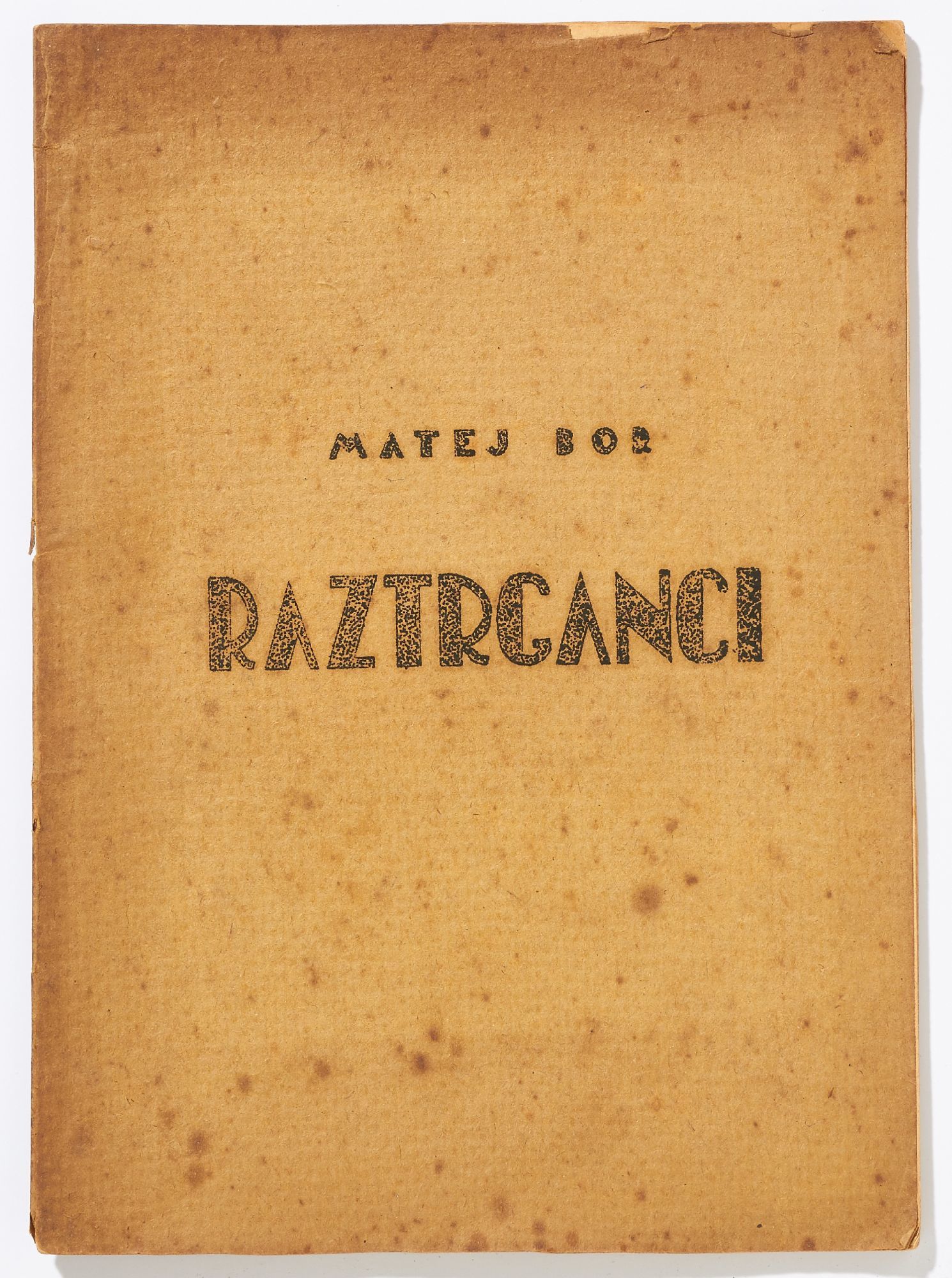 The corpus of their surviving works is diverse, and considering the circumstances of their production, by turns crude or surprisingly sophisticated in content, graphic design, and illustration. This collection features 14 pamphlets chosen for their subject matter and rarity: *OCLC* locates no copies of 11 titles, and only two copies each of the other three works. Included is the only known surviving first edition of Matej Bor’s *Raztrganci* [The Vagabonds], the most acclaimed Partisan work of theatre, and one of the earliest first-hand accounts of life inside the Mauthausen concentration camp, printed by a Partisan press in 1944. Also included are four other works of arts and entertainment (theatre, music, poems), four military manuals, one medical field manual and one medical journal, a children’s alphabet book, and a pamphlet about Muslim women Partisans. Most are mimeographed, with mimeographed illustrations, maps, and music, and some also have black and white or color linocut illustrations.