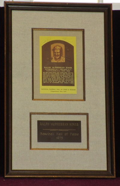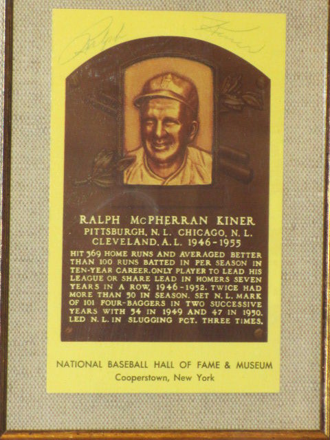 Cooperstown, NY: National Baseball Hall of Fame & Museum, 1975. Fine. Offered is a card from the National Baseball Hall of Fame & Museum SIGNED BY RALPH KINER without personalization. The card is in a museum quality frame with engraved plate with name and date of induction in museum. Includes certificate of authenticity.