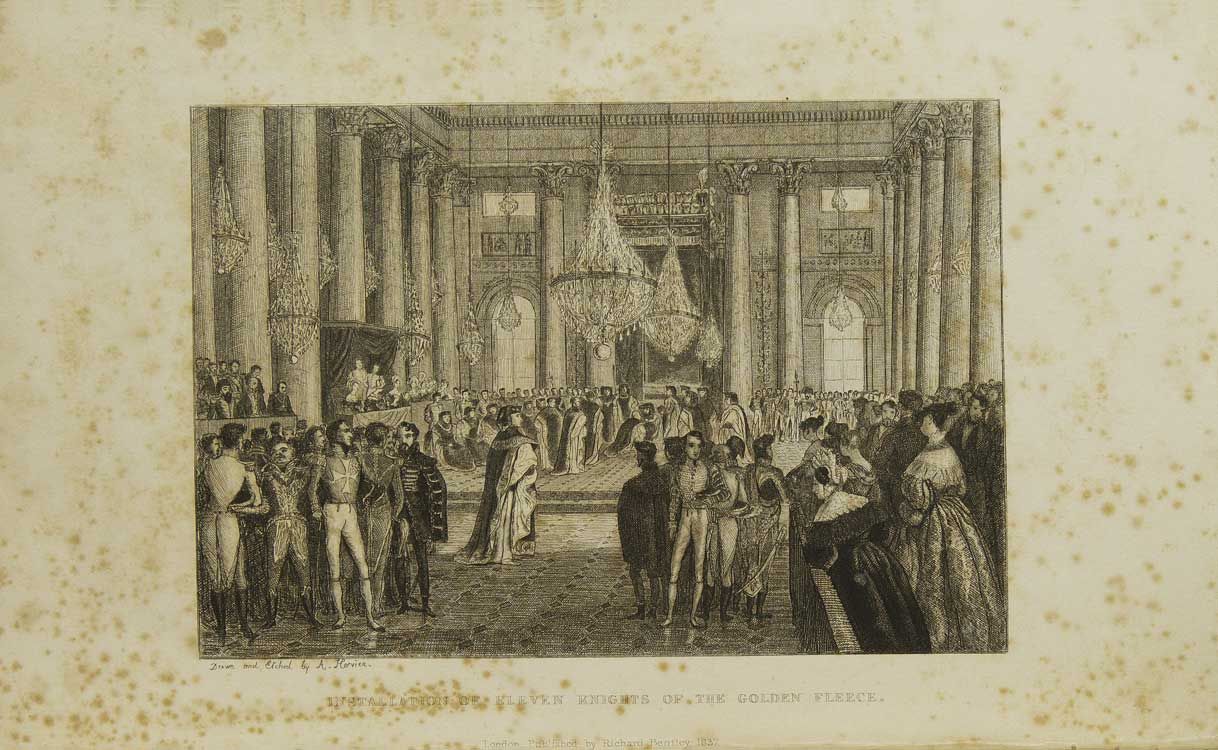London: Richard Bentley, 1838. First edition, with half-titles. Each with engraved title page dated 1837, 10 plates by Hervieu. xvi, [ii], 388; xii, 419 pp. 2 vols. 8vo. Original ribbed blue cloth, front boards with Austrian Imperial double-headed eagle in gilt. Very nice set, ffep of Vol II missing. First edition, with half-titles. Each with engraved title page dated 1837, 10 plates by Hervieu. xvi, [ii], 388; xii, 419 pp. 2 vols. 8vo. Sadleir 3247; Wolff 6836
