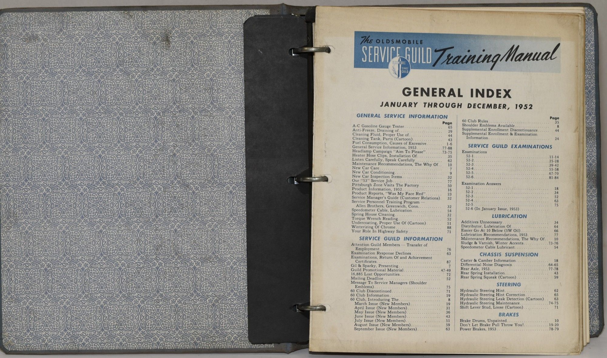 THE OLDSMOBILE SERVICE GUILD TRAINING MANUAL. 23 ISSUES. JAN-DEC. 1952; JAN-DEC. 1953