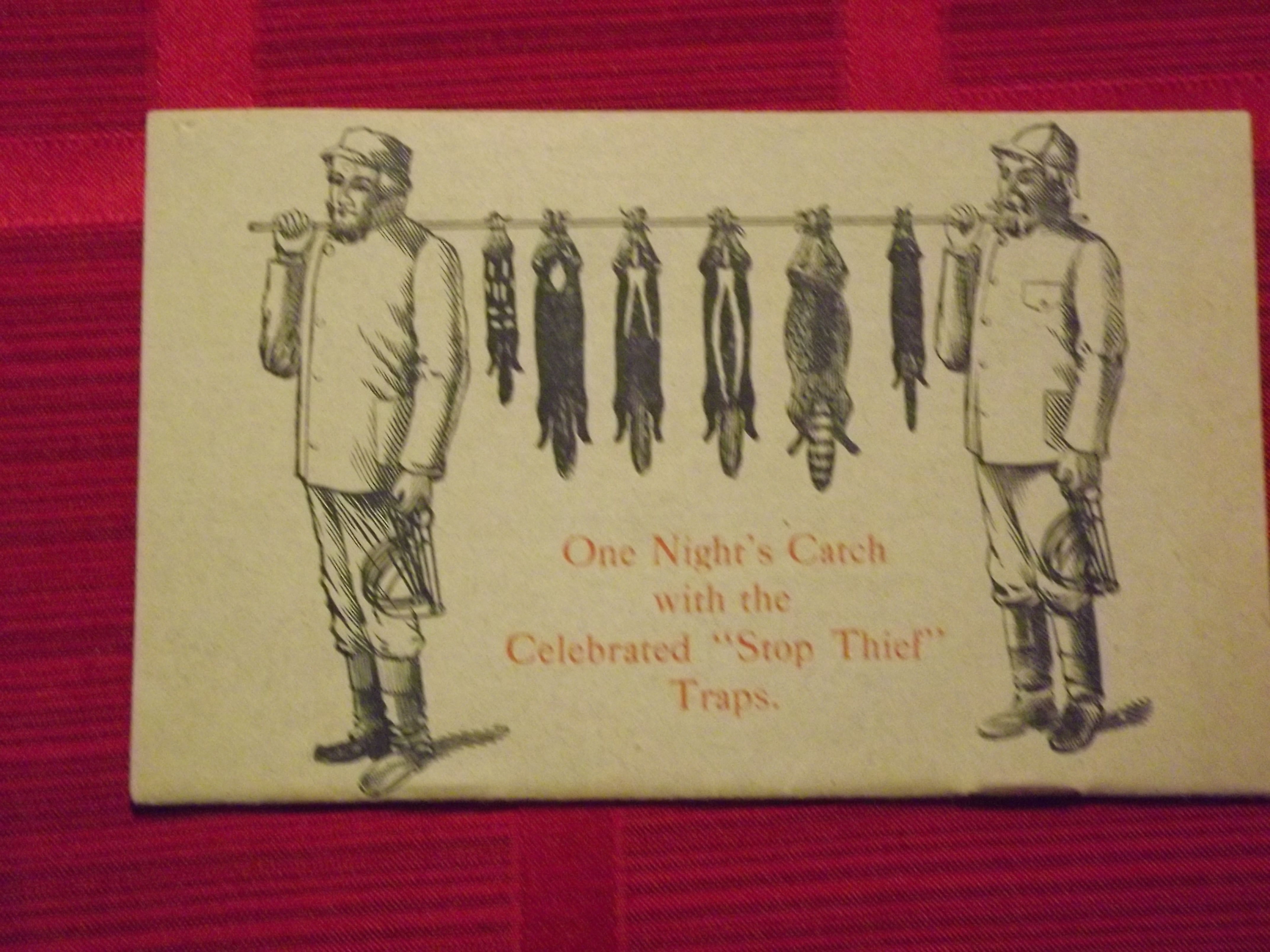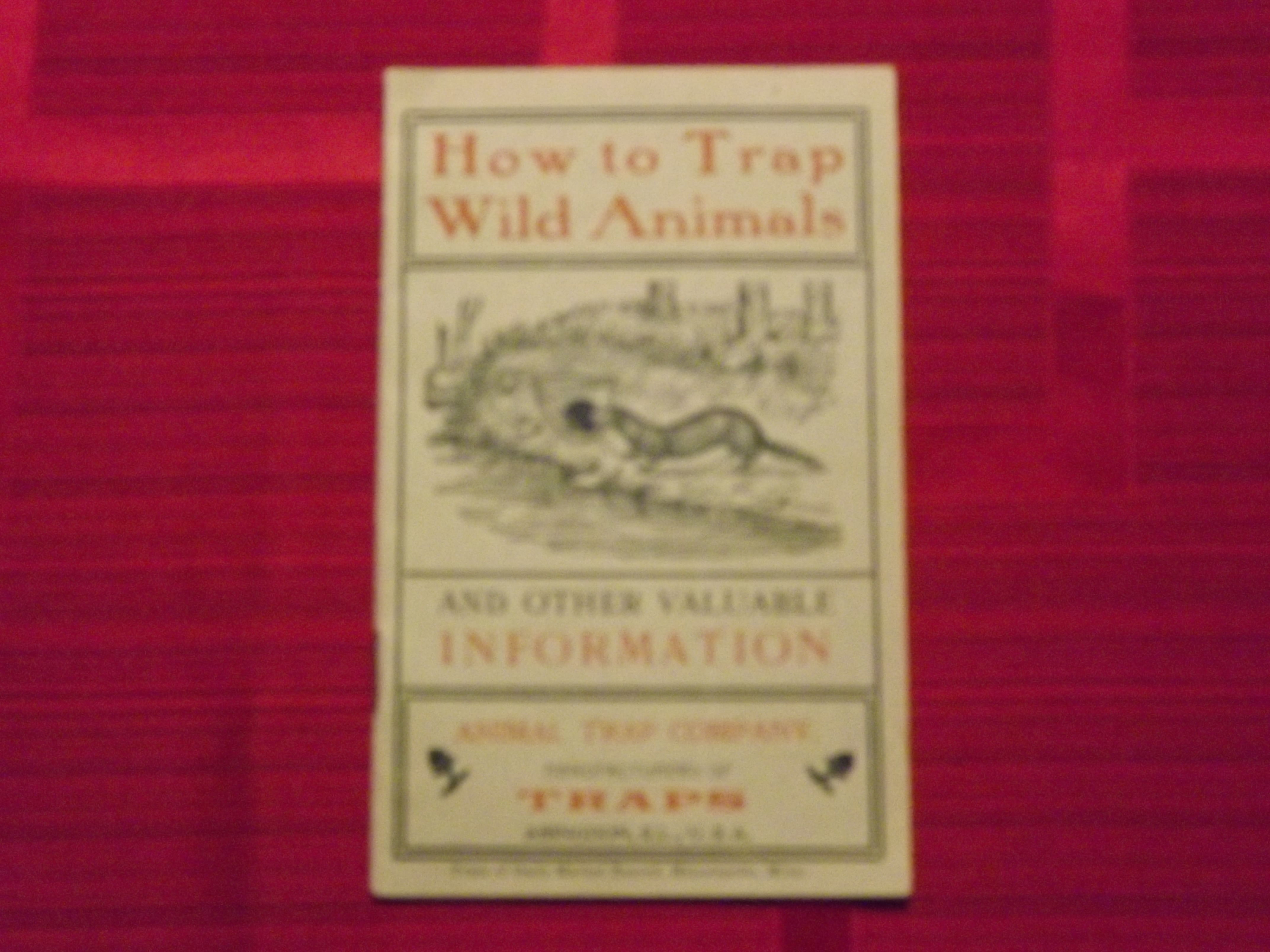 32mo, pamphlet, original pictorial wrappers, illustrated 24 pp. Normal aging; otherwise near fine. A rather scarce title on trapping, that appears to have been published in a few editions. OCLC/Worldcat locates copies of the 1905 and 1911 installments, but no copies of the 1902 edition. Provides illustrated details on how to trap raccoons, shunks and mink. This is a promotional pamphlet on trapping put out by the American Trap Company. OCLC.