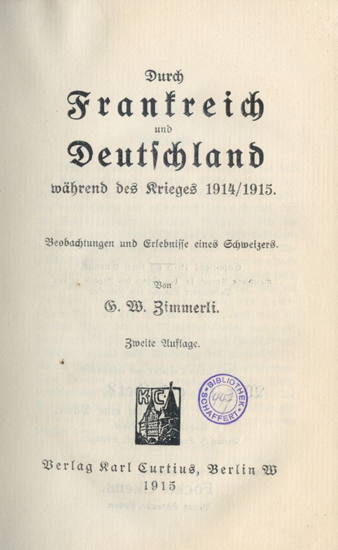 Durch Frankreich und Deutschland während des Krieges 1914/1915. Beobachtungen und Erlebnisse eines Schweizers