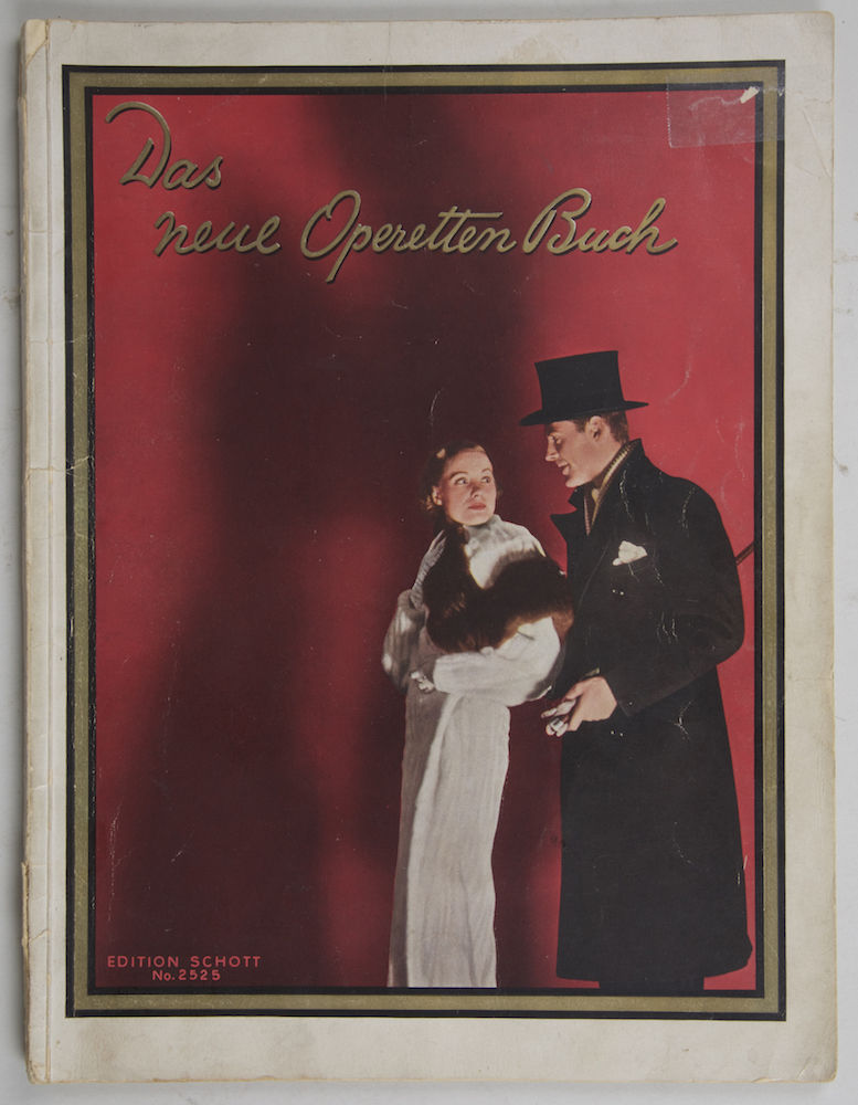 Wrappers slightly worn and torn; head and tail of spine slightly lacking. Small tears to outer margins of first leaves, slightly affecting borders of title and contents; minor soiling to lower outer corners; some creasing to inner margins; verso of wrappers, title, and final leaf very slightly browned. The first in a 5-volume series of operetta excerpts issued by Schott between 1935 and 1955.