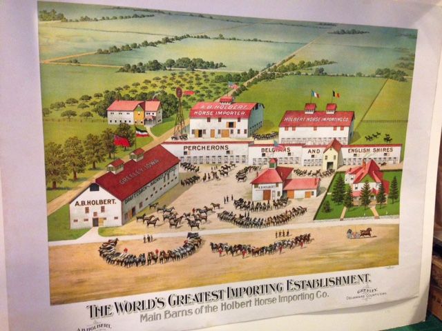 THE WORLD'S GREATEST IMPORTING ESTABLISHMENT. MAIN BARNS OF THE HOLBERT HORSE IMPORTING CO. A.S. HOLBERT, PROPRIETOR. GREELEY, DELAWARE COUNTY, IOWA. [caption title below image]