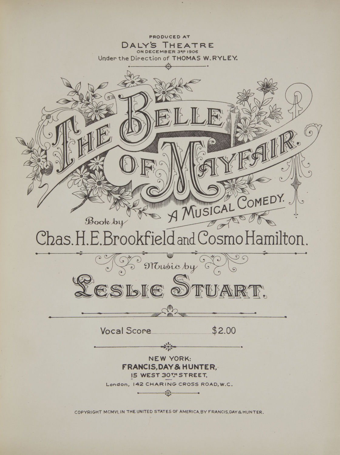 The Belle of Mayfair. A Musical Comedy. Book by Chas. H.E. Brookfield and Cosmo Hamilton. [Piano-vocal score]