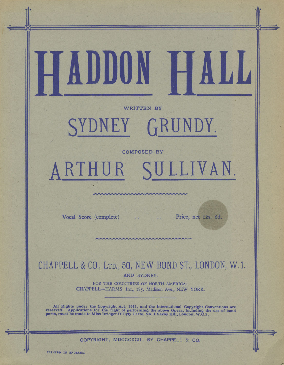 Haddon Hall. Written by Sydney Grundy ... Arranged from the Full Score by King Hall. [Piano-vocal score]